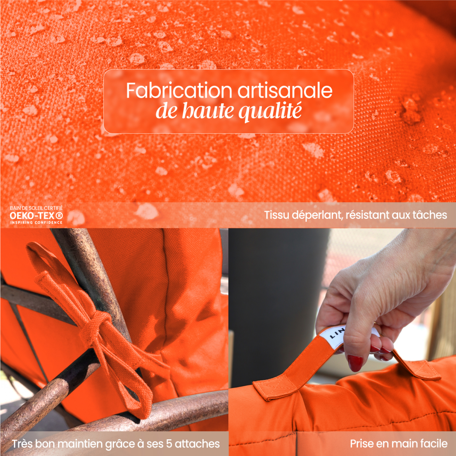| Libellé | Linxor - Coussin matelassé pour bain de soleil, transat - 185 x 60 cm - Orange |