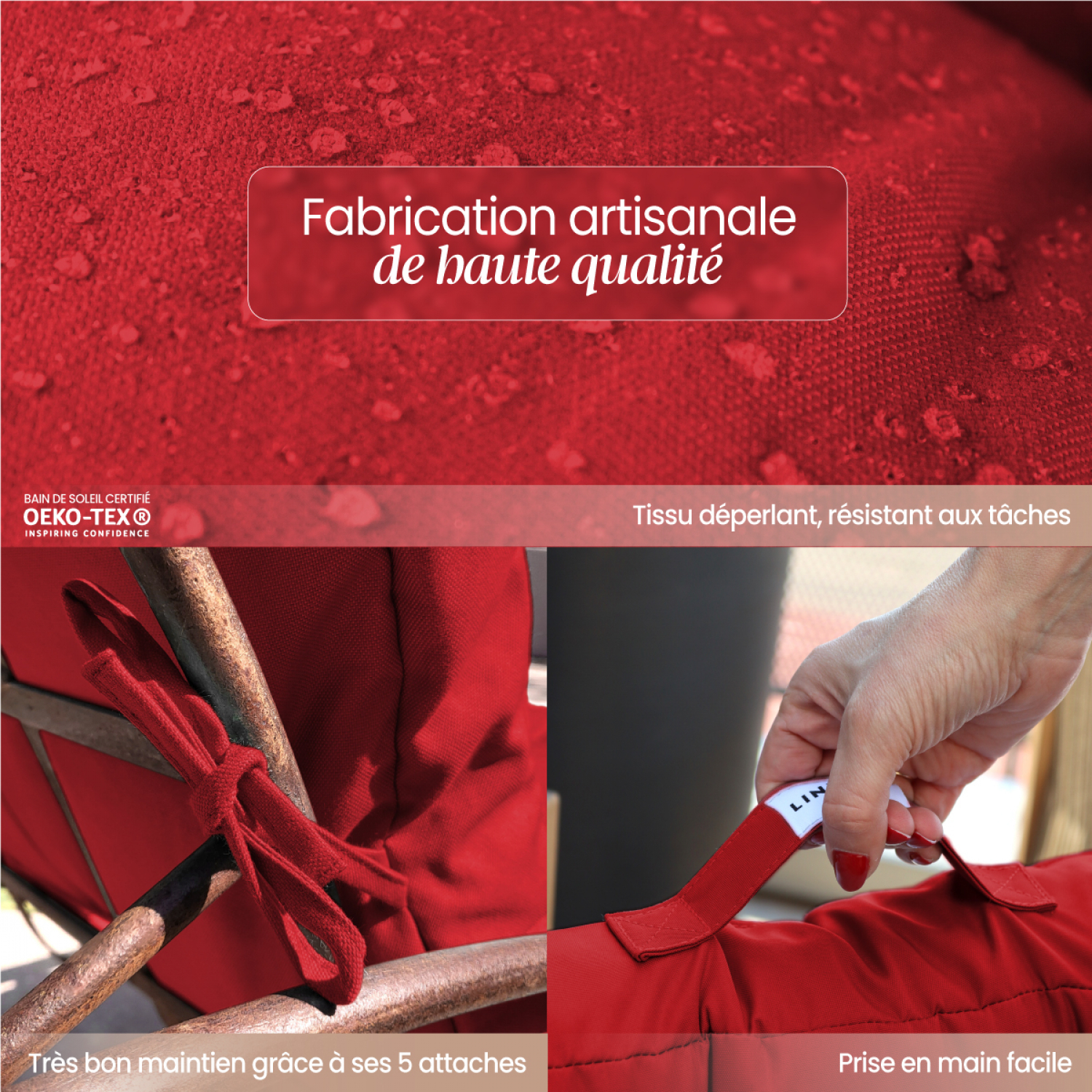 | Libellé | Linxor - Coussin matelassé pour bain de soleil, transat - 185 x 60 cm - Rouge |