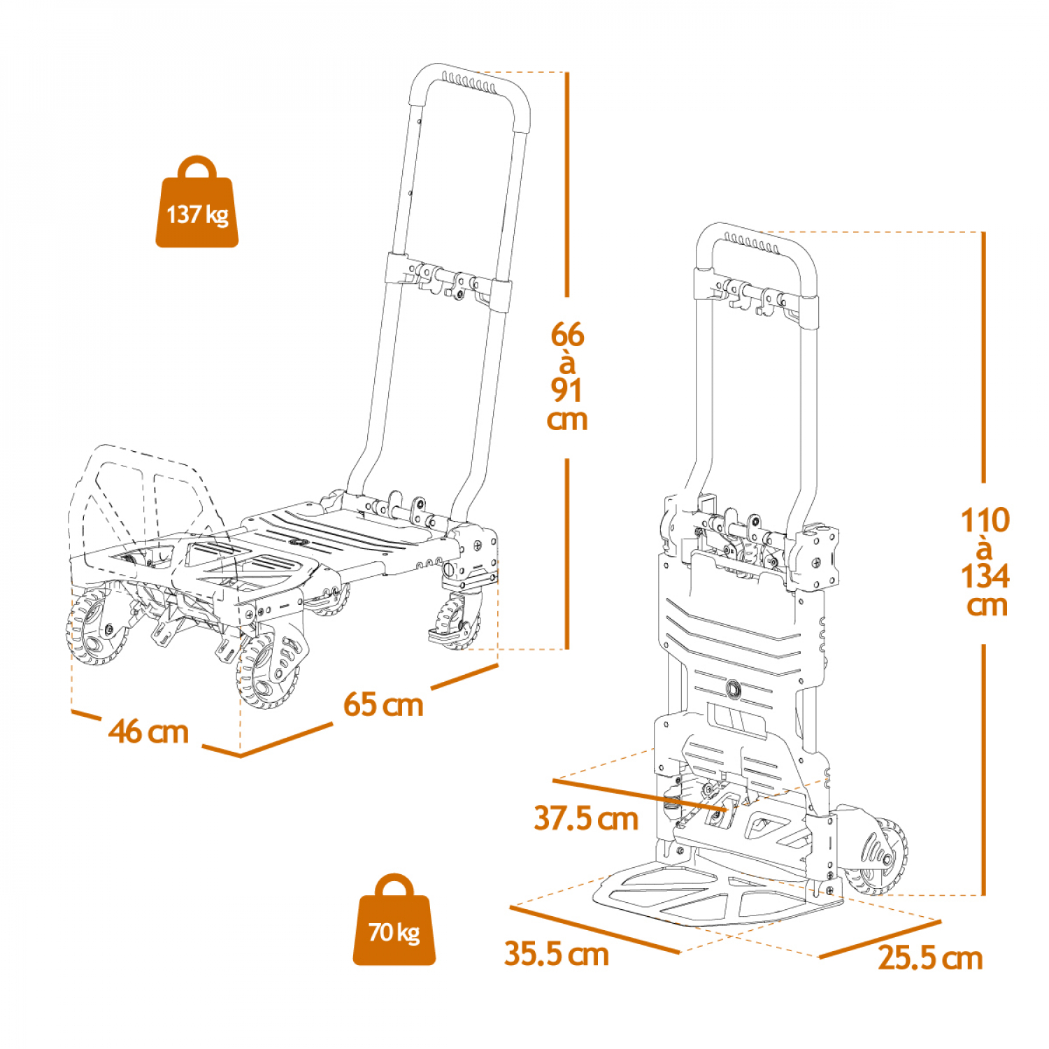| Libellé | Linxor - Diable, chariot 2 en 1 pliable 4 roues - Charge 137 kg |