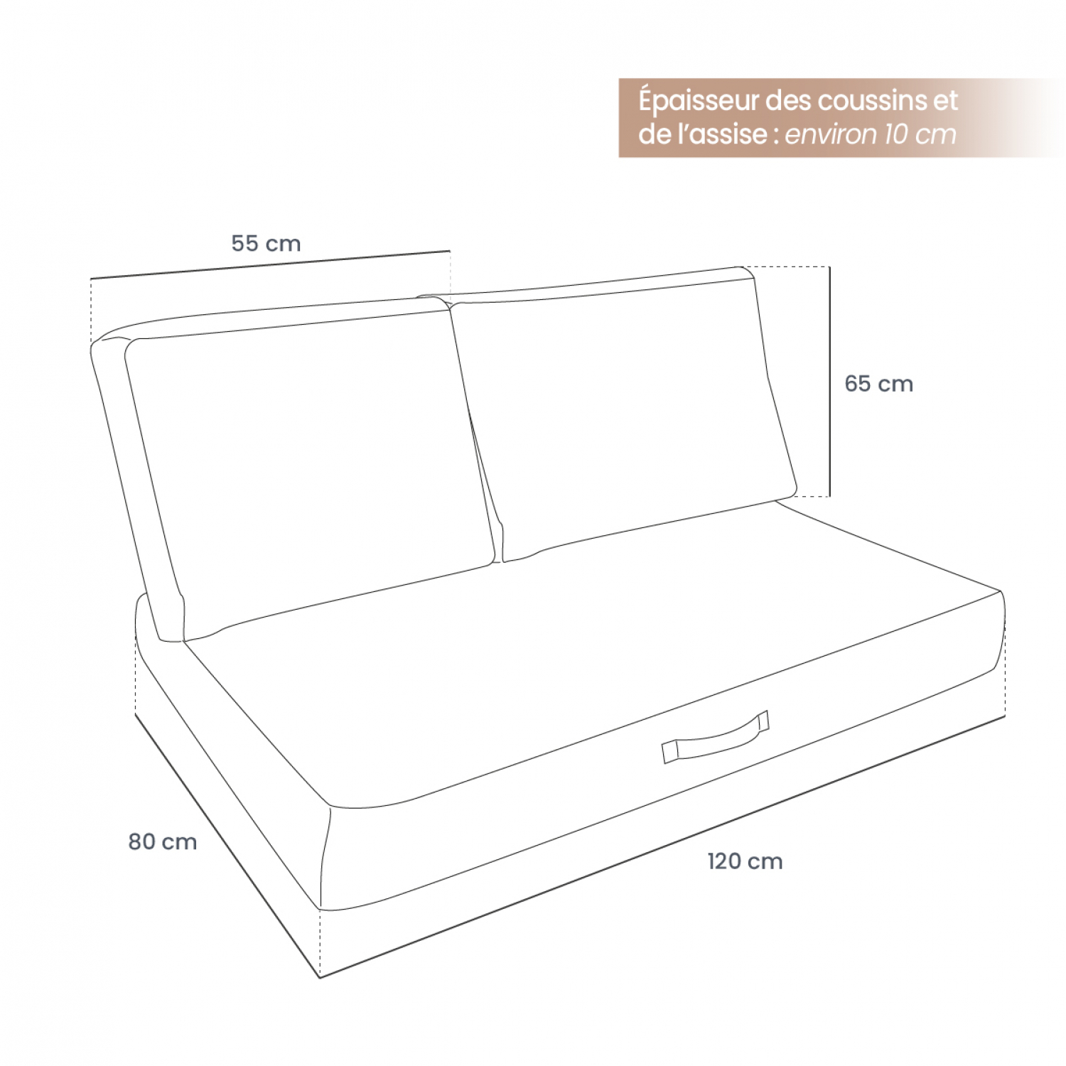 Le kit de coussins pour palette Linxor habillera parfaitement votre terrasse ou votre jardin. Composé d'une belle assise et de deux coussins garnis de mousse et recouvert d'un tissu oxford en 100% polyester, ce kit de coussins pour palette fabriqué entièrement à la main est ultra confortable. Certifié OEKO-TEX® STANDARD 100, le kit de coussins pour palette est garanti sans substances indésirables pour la santé et pour la peau. Avec 180 gr/m², le tissu est dense. Il est fait pour résister dans le temps. Coussins comme assise sont déhoussables à l'aide d'une fermeture zippée invisible. Ainsi vous pouvez laver les housses en machine à 30° et conserver un salon de jardin toujours propre afin de passer un agréable moment en famille ou entre amis. L'assise mesure environ 120 cm de largeur par 80 cm de profondeur et 10 cm d'épaisseur. Les deux coussins mesurent environ 55 cm de largeur par 65 cm de hauteur et 10 cm d'épaisseur. Ce produit fait partie de la gamme La Voguette. Autres coloris disponibles. Les palettes ne sont pas fournies avec le kit de coussins pour palette.