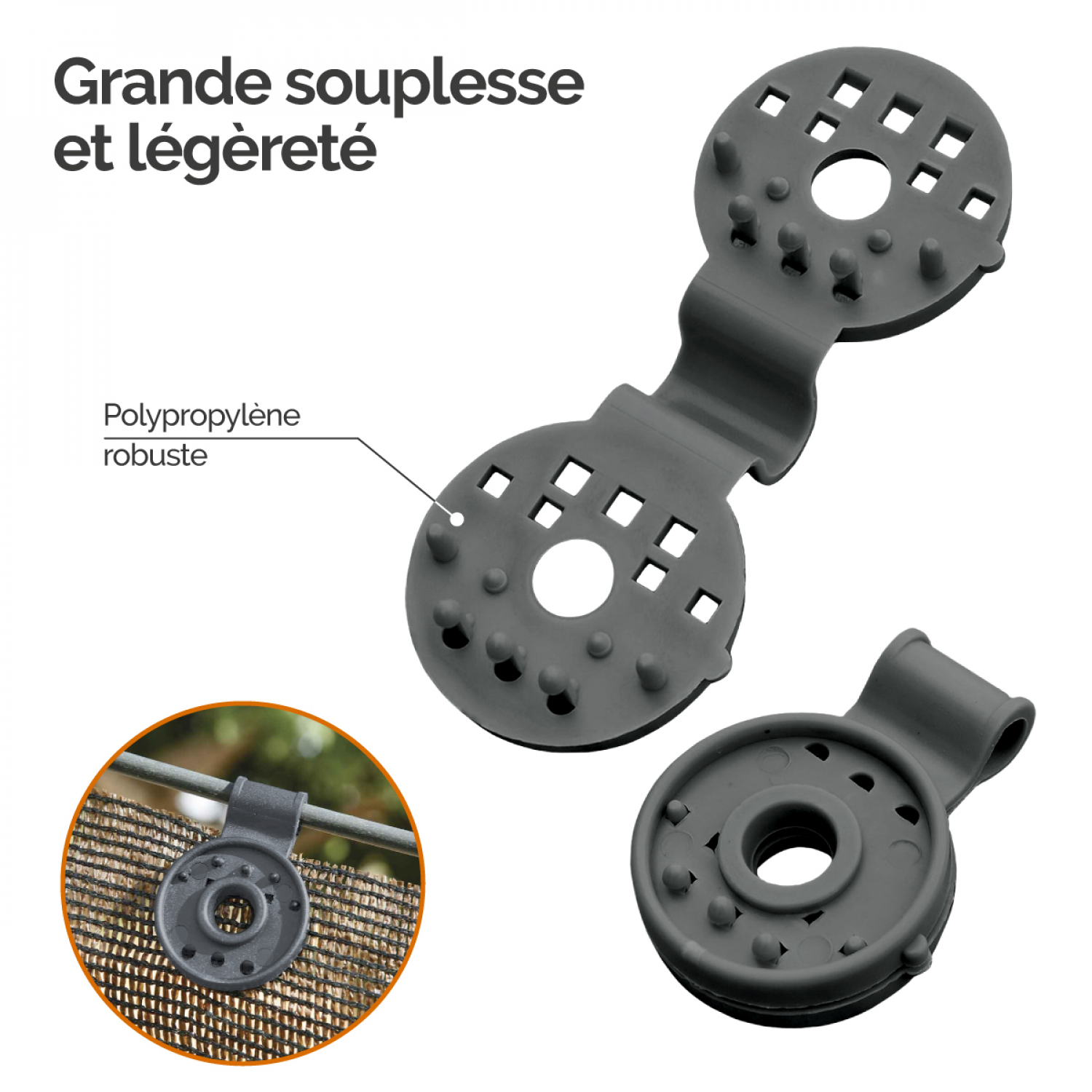 | Libellé | Linxor - Lot de 100 clips de fixation pour brise vue, bâche ou toile d'ombrage - Gris |