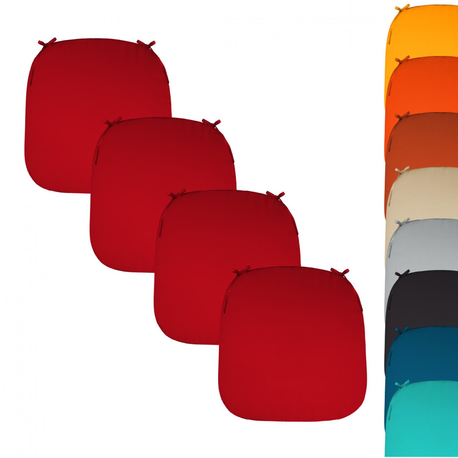 Linxor - Lot de 4 galettes, coussins déhoussables pour chaise - Rouge