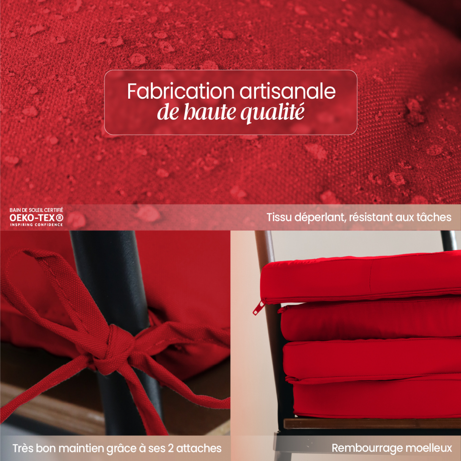 | Libellé | Linxor - Lot de 4 galettes, coussins déhoussables pour chaise - Rouge |