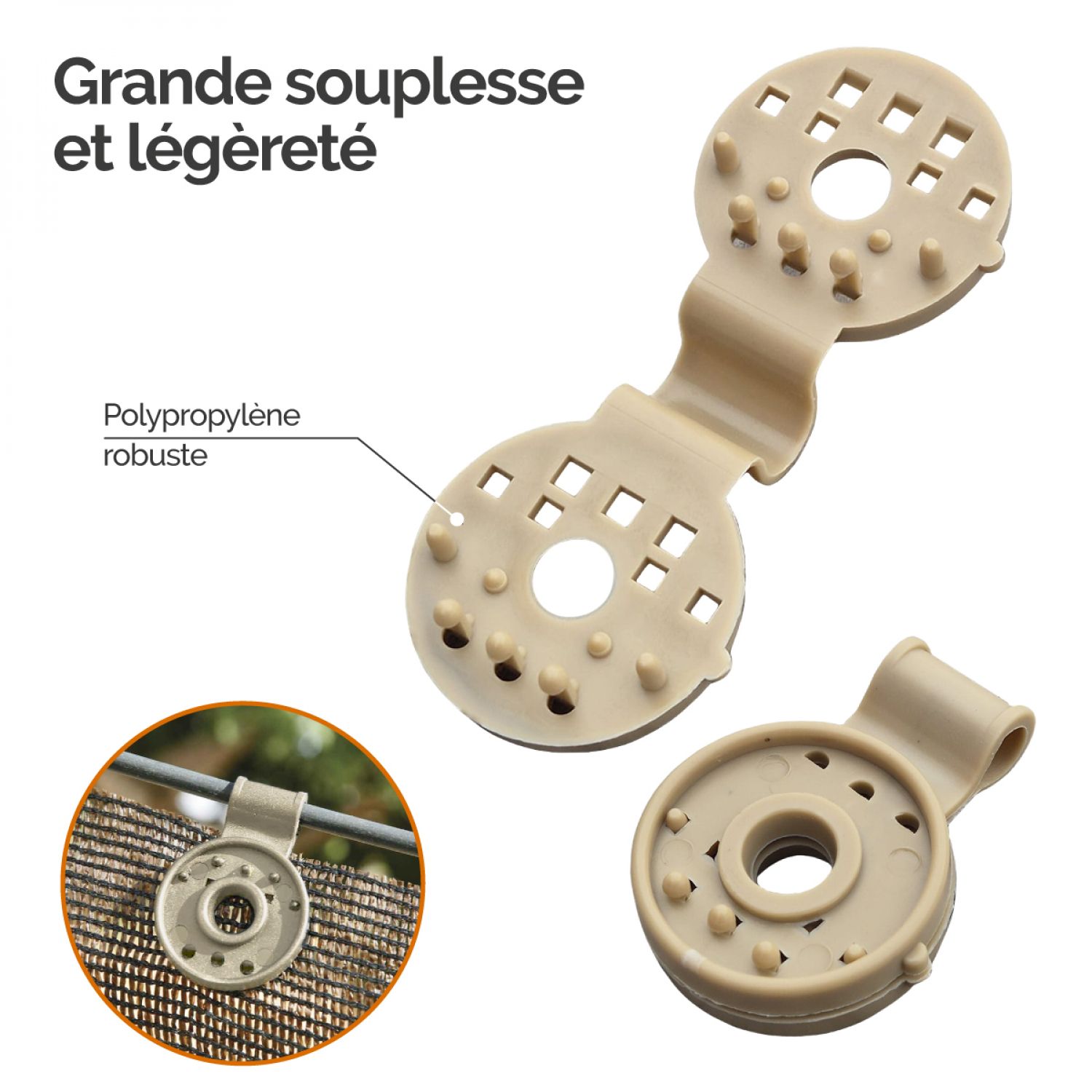 Linxor - Lot de 50 clips de fixation pour brise vue, bâche ou toile d'ombrage - Beige