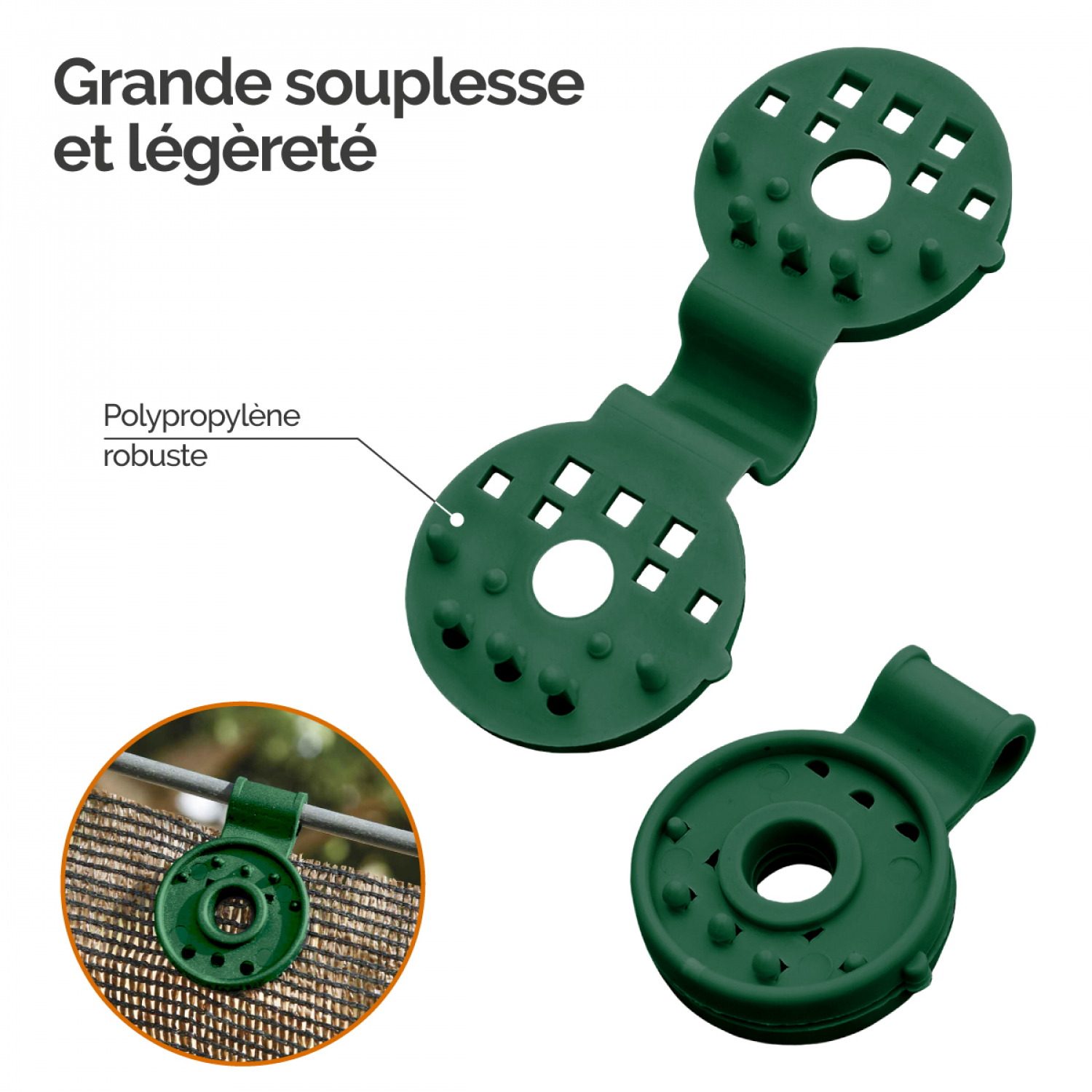 | Libellé | Linxor - Lot de 50 clips de fixation pour brise vue, bâche ou toile d'ombrage - Vert |