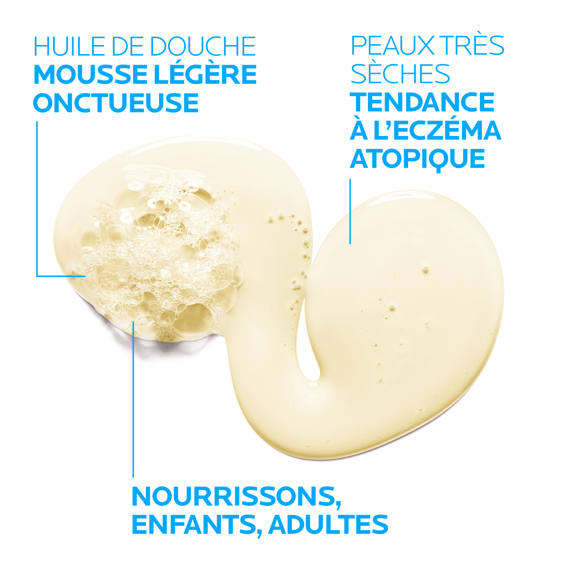 LA ROCHE POSAY Lipikar Huile lavante AP+ Huile douche Apaise immédiatement Peaux sèches à très sèches, tendance eczéma atopique Bébés, enfants et adultes La peau est moins sèche dès la douche: -46%* La peau est plus douce dès 7 jours d'utilisation: +38%** Hydratation 24h*** Etude cosméto-clinique, 43 femmes peau sèche à très sèche, application quotidienne sous la douche pendant 7 jours * Dermascore ** Dermatologue *** Corneomètre sur 24 sujets.