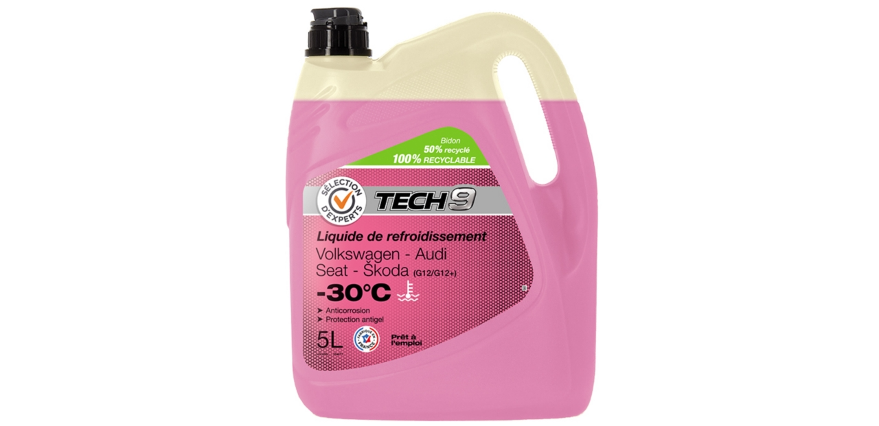 Développé pour les véhicules Volkswagen, Audi, Seat et Skoda, ce liquide de refroidissement TECH9 répond aux exigences des constructeurs automobiles et assure un refroidissement optimal du moteur. Ses additifs anti-tartre et anti-corrosion protègent l'ensemble du circuit de refroidissement en empêchant la formation de dépôt. Il protège ainsi culasse et bloc-cylindre contre les surchauffes qui engendrent la corrosion. Pour moteurs Essence et Diesel. Prêt à l'emploi, à utiliser sans adjonction d'eau. Pour les circuits de refroidissement en fonte et en aluminium.Risque présumé d'effets graves pour les reins à la suite d'expositions répétées ou d'une exposition prolongée. En cas de consultation d'un médecin, garder à disposition le récipient ou l'étiquette. Tenir hors de portée des enfants. Ne pas respirer les poussières/fumées/gaz/brouillards/vapeurs/ aérosols. Se laver la peau soigneusement après manipulation. Ne pas manger, boire ou fumer en manipulant ce produit. EN CAS D'INGESTION: Appeler un CENTRE ANTIPOISON ou un médecin en cas de malaise. Éliminer le contenu/récipient dans un centre de collecte des déchets dangereux conformément à la réglementation nationale.Attention, contient du MONOETHYLENE-GLYCOL (n°Index : 603-027-00-1) amérisé.Ce produit est fabriqué en France.