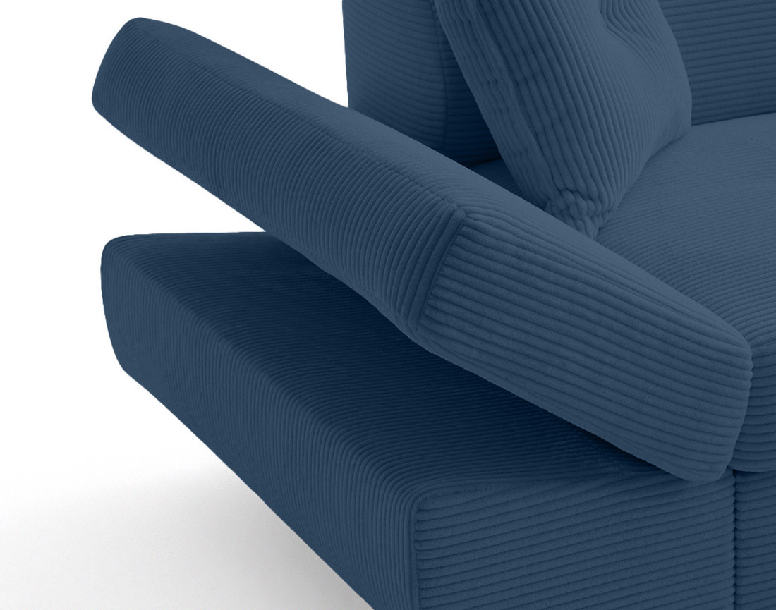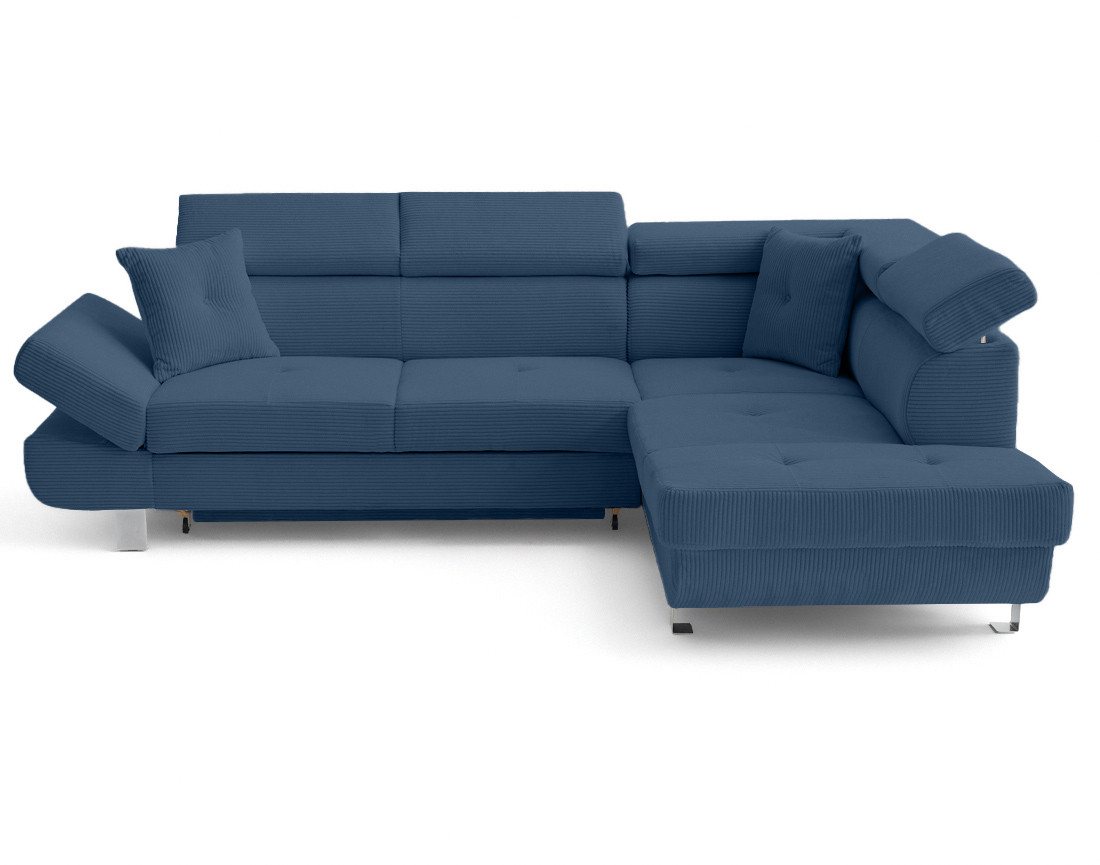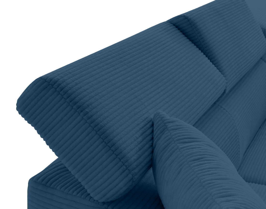 Lisbona - canapé d'angle droit 5 places convertible avec têtières en velours côtelé
