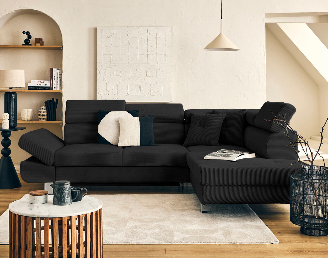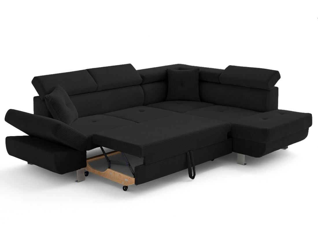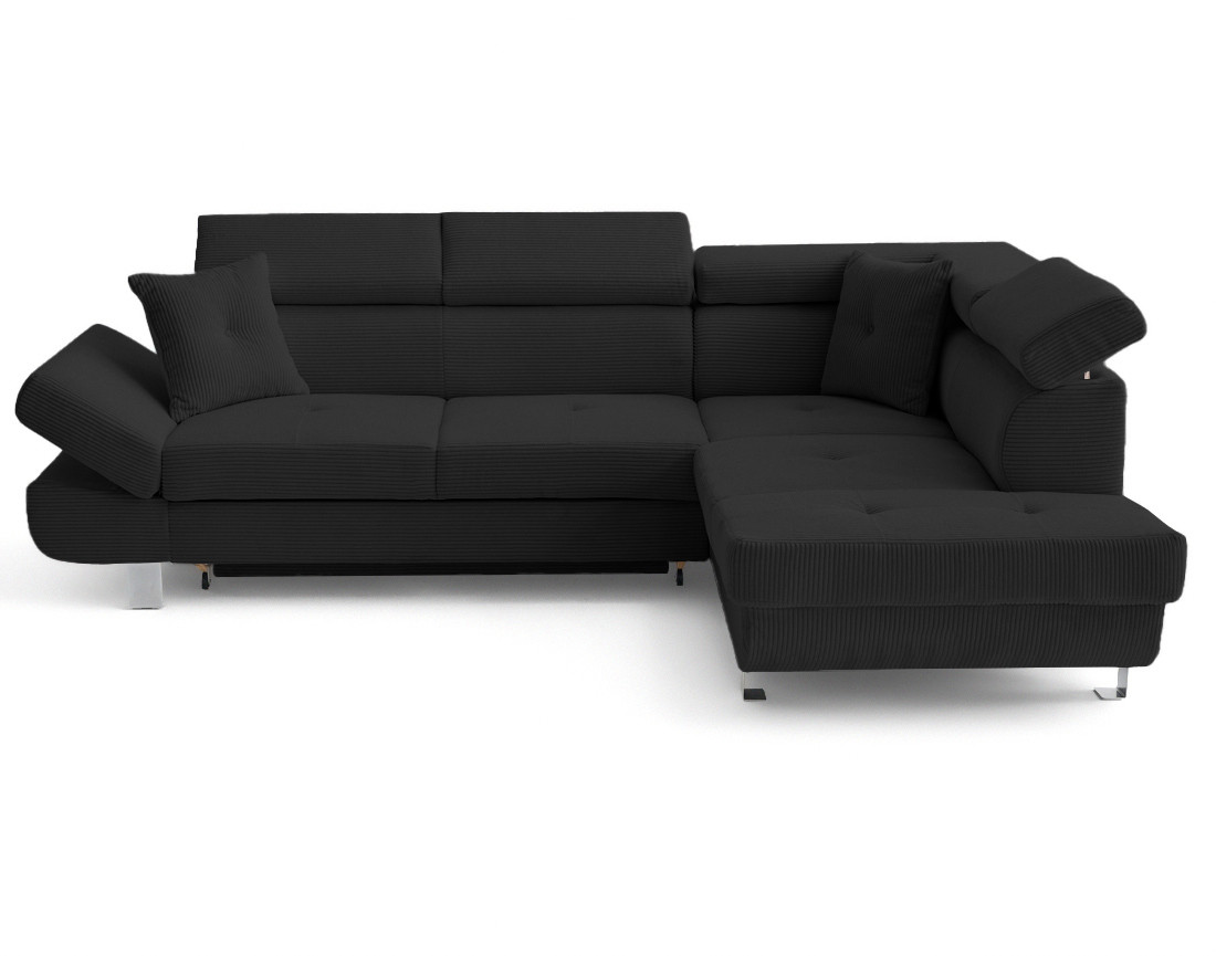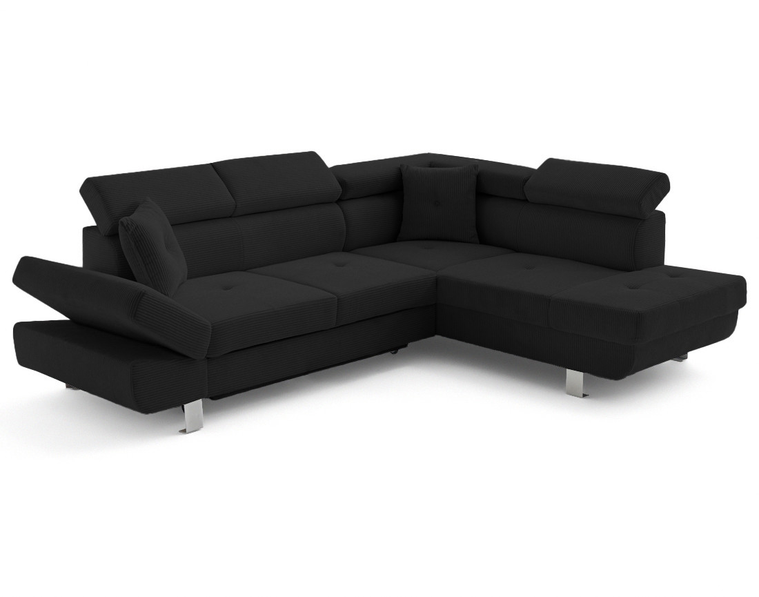 Lisbona - canapé d'angle droit 5 places convertible avec têtières en velours côtelé