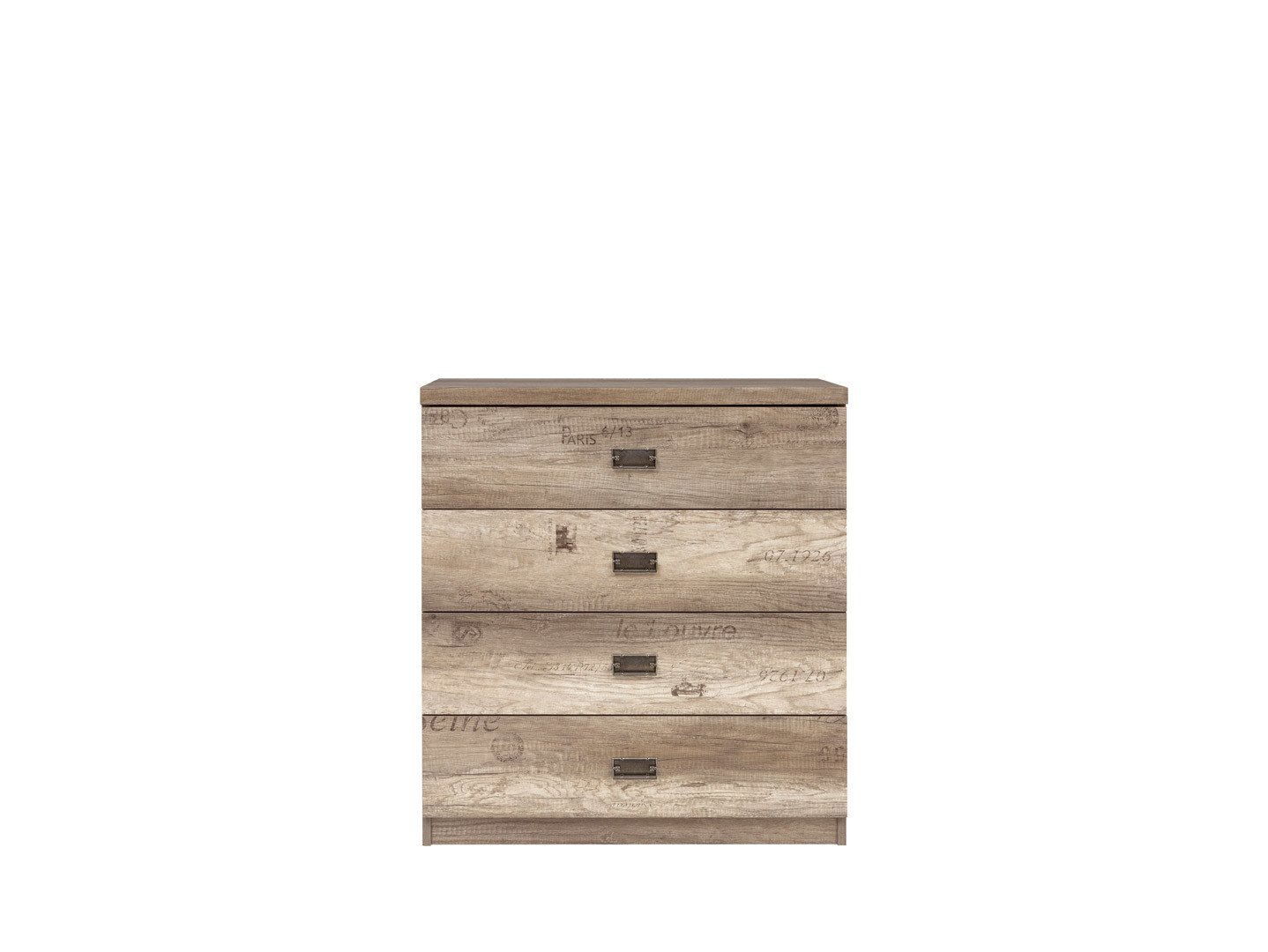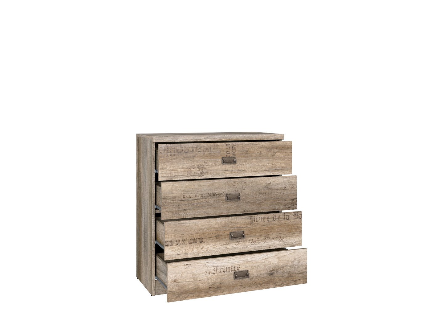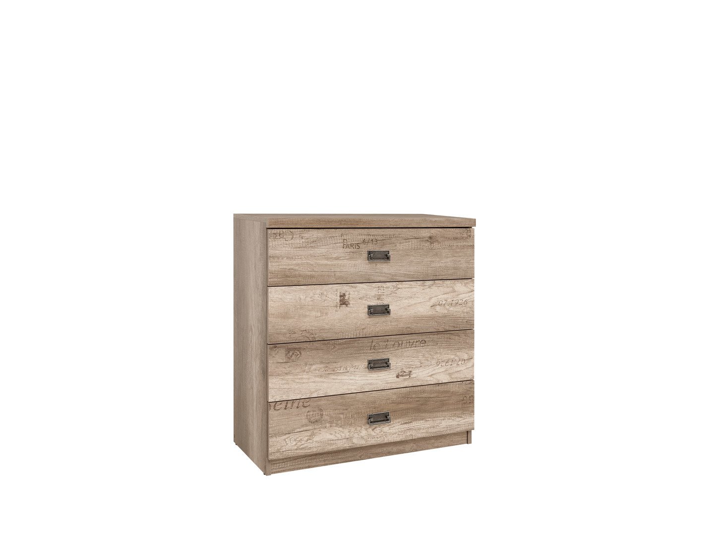 Les quatre tiroirs de cette commode s'ouvrent délicatement et apportent de nombreux espaces de rangement. Les lettres marquées sur le meuble ainsi que les grandes poignées pratiques, en nickel antique, accentuent son style moderne., POINTS FORTS: Style moderne, Quatre tiroirs s'ouvrant délicatement, Coulisses avec amortisseurs, Grandes poignées en métal, Impressions de lettres stylisées, CARACTÉRISTIQUES TECHNIQUES: Profondeur 40 cm, Largeur 80 cm, Hauteur 87,5 cm, Produit en Europe, À monter soi-même, Photos des articles le plus fidèle possible, mais restant non contractuelles, les nuances de couleur et le rendu des matières présentés à l'écran pouvant être différents de la réalité
