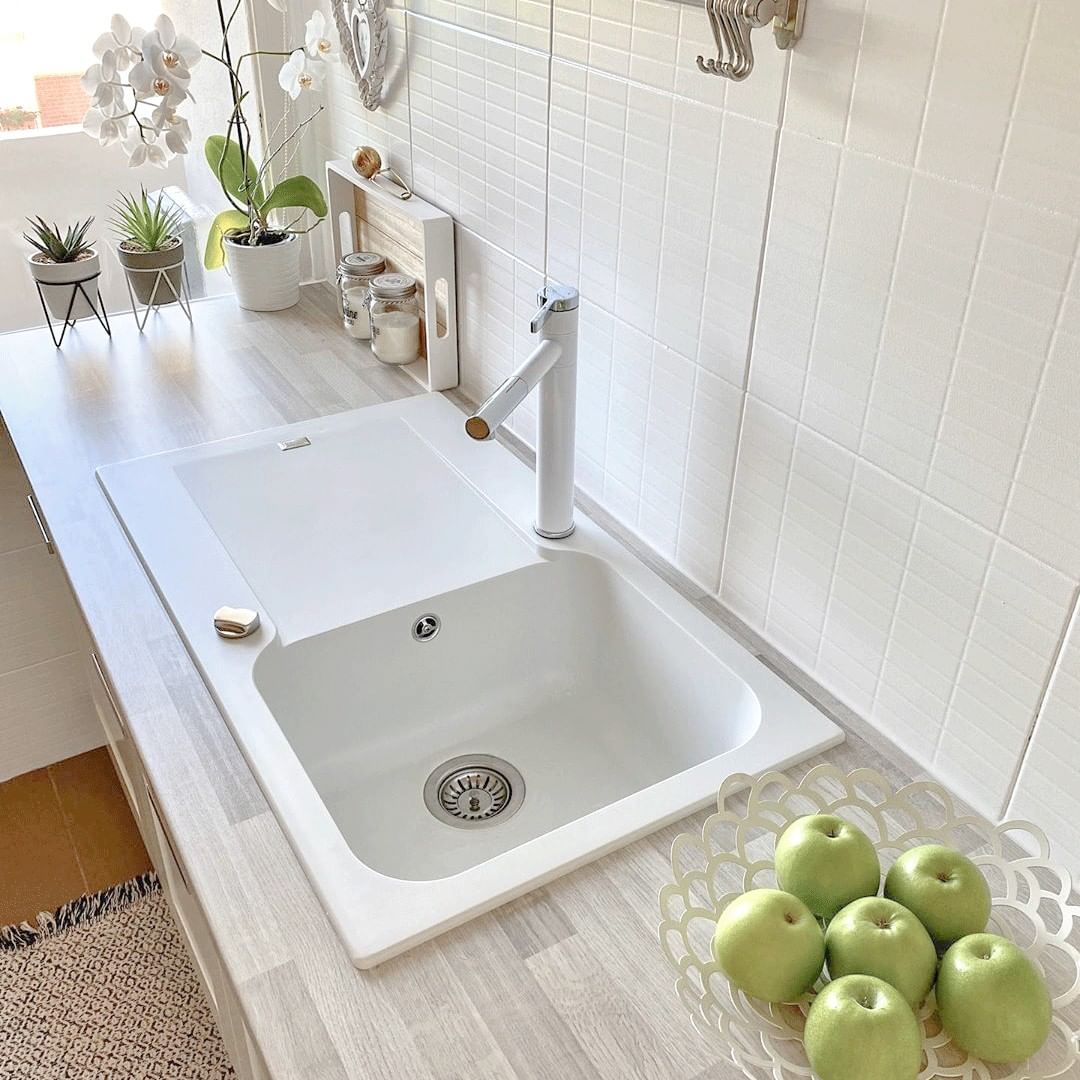Cet évier est le rêve de toute personne qui souhaite avoir une cuisine parfaitement élégante. En résine blanche, il contient une cuve et est fourni des pattes de fixation pour qu'il puisse être entièrement encastrable.