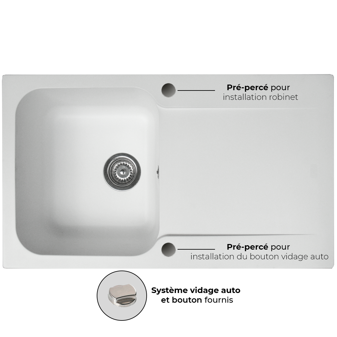 | Libellé | Lisse évier réversible 1 cuve 1 égouttoir en résine blanc |