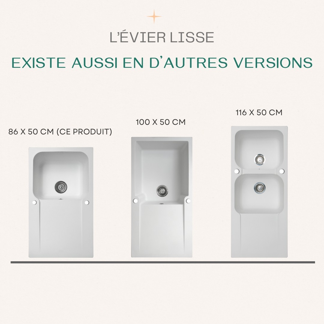 Lisse évier réversible 1 cuve 1 égouttoir en résine blanc