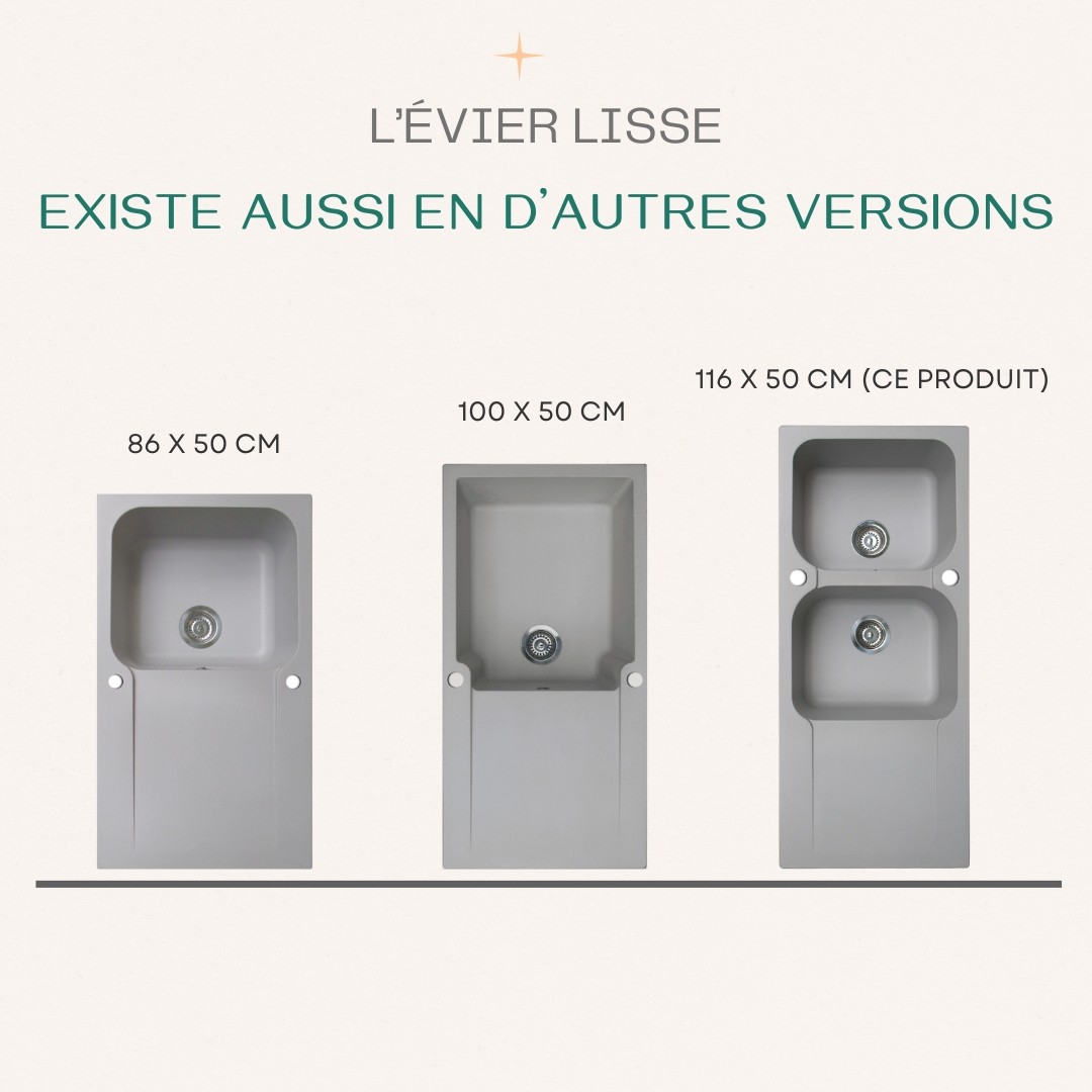 | Libellé | Lisse évier réversible 2 cuves 1 égouttoir en résine gris |