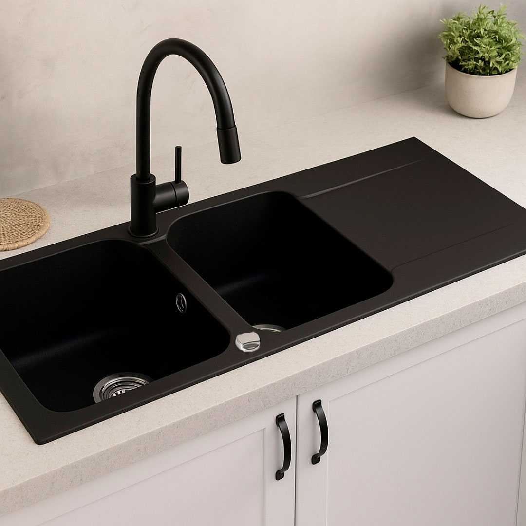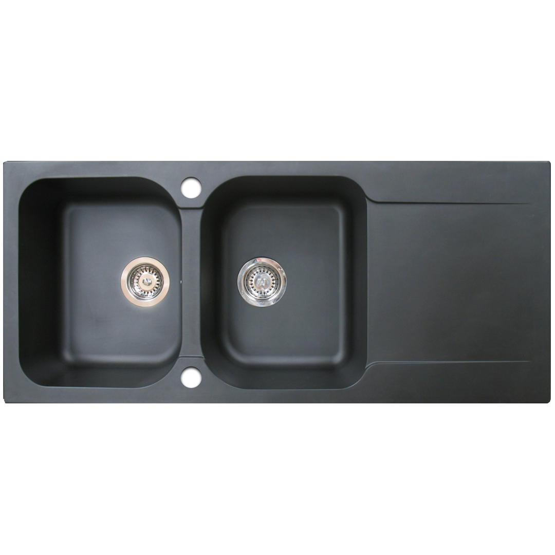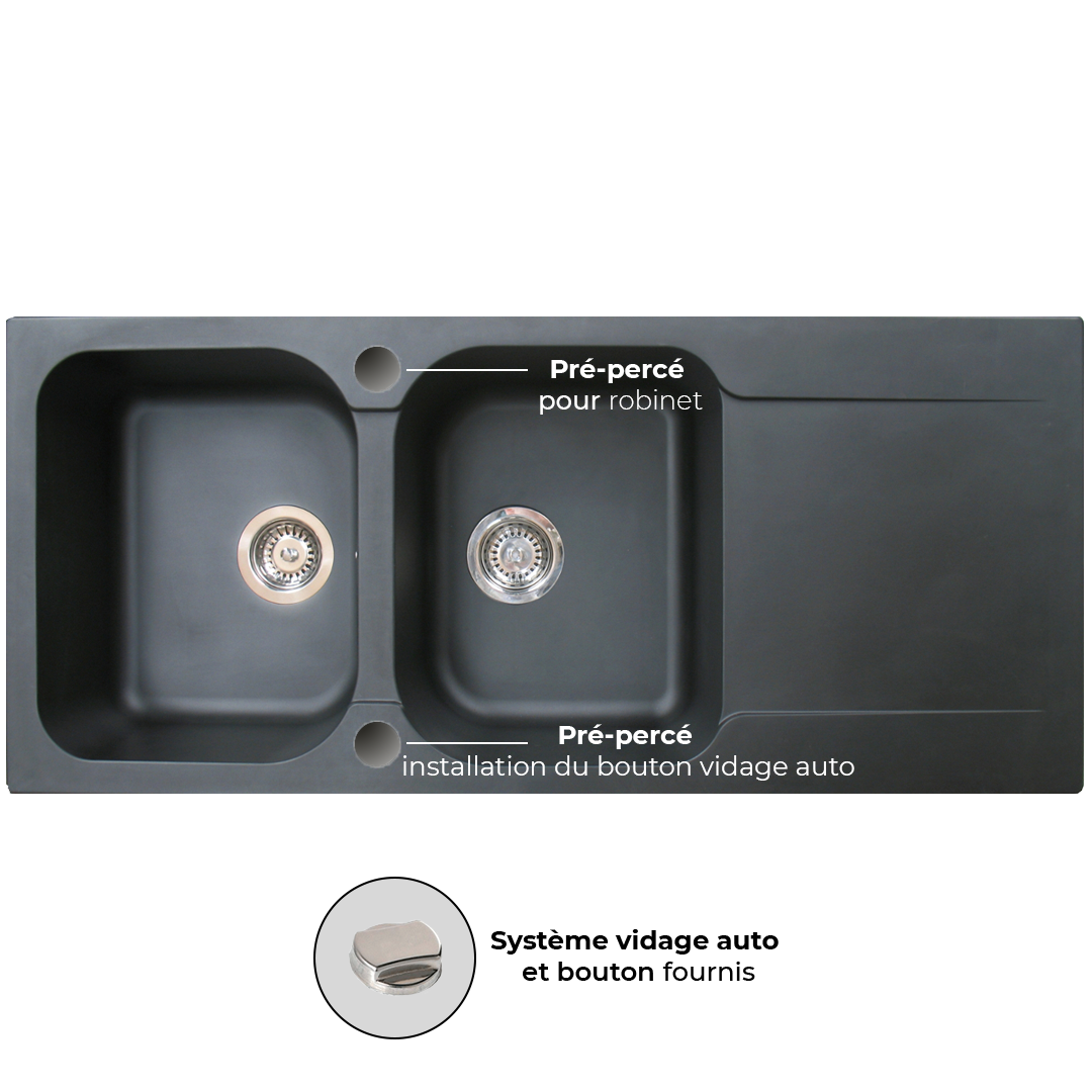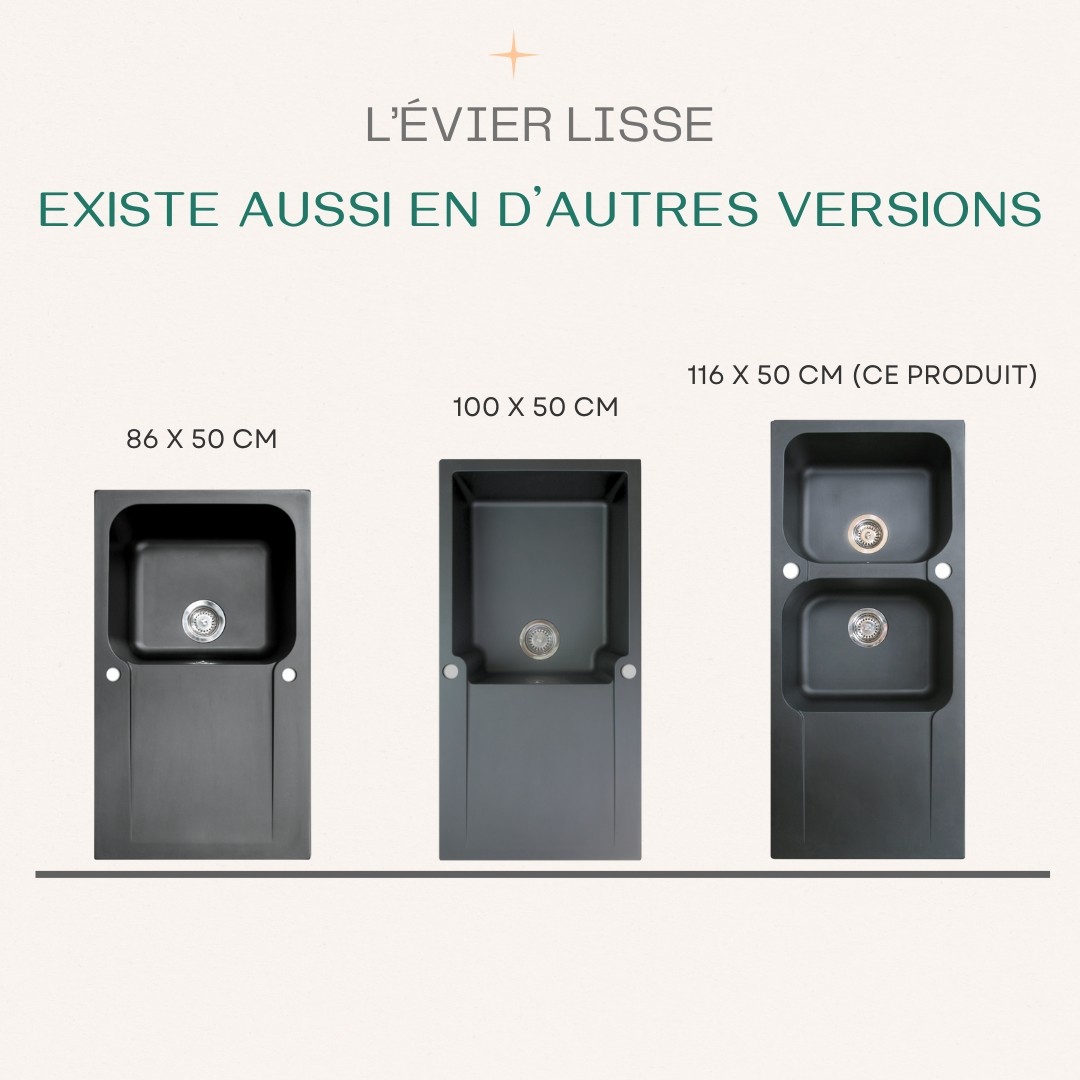 Libellé Lisse évier réversible 2 cuves 1 égouttoir en résine noir