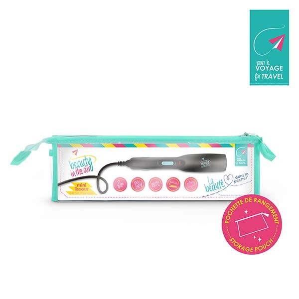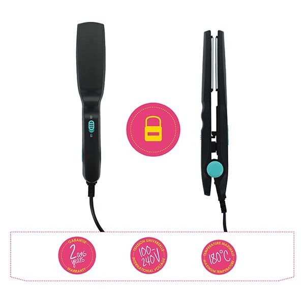 Grâce à son petit format le mini lisseur Beauty In The Air s'emporte facilement lors de vos déplacements. Il est adapté à la tension universelle (AC 110/240V ̴50/60Hz) et ses plaques en aluminium chauffent jusqu’à 180°C. Ce mini lisseur est doté d’un système de verrouillage et d’un témoin lumineux de fonctionnement.