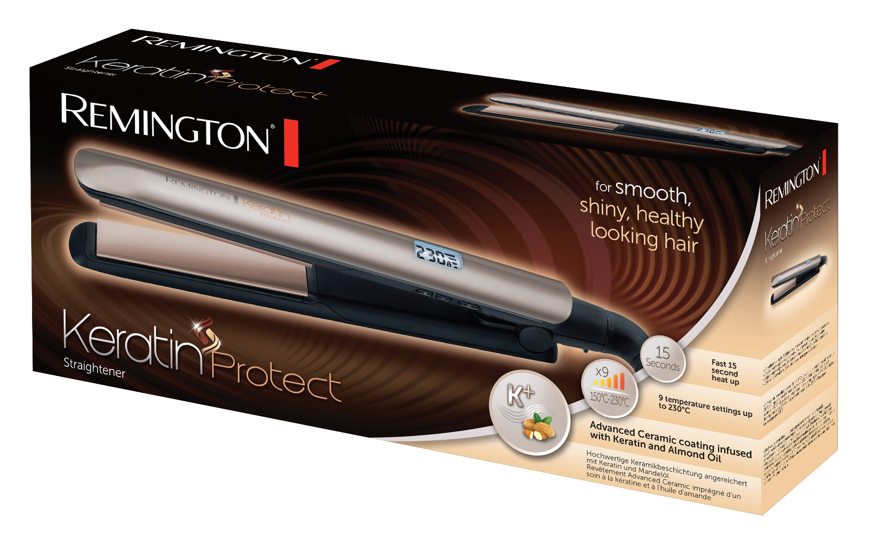 s8540 - lisseur céramique 230°c - Lisseur céramique Keratin Protect Remington S8540 avec revêtement Advanced Ceramic Kératine & Huile d?Amande.Les cheveux lisses et brillants sont le summum de la sophistication. Mais parfois, le fait de lisser vos cheveux peut les endommager. Si vous les lissez régulièrement à température élevée, vous risquez de les assécher et de voir apparaître des fourches.Exprimez votre style sans mettre la santé de vos cheveux en péril grâce au lisseur Keratin Protect, un lisseur qui vous aide à obtenir une coiffure lisse, brillante et éclatante de santé.Les plaques céramiques de ce lisseur, infusées à la kératine et à l'huile d'amande, vous permettent d'obtenir la coiffure de vos rêves tout en protégeant votre cuir chevelu.Avec ses tonalités d'or rose et de cuivre, ce lisseur propose 9 niveaux de température pour que vous puissiez adapter la température à votre type de cheveux. La fonction PRO+ vous permet de lisser vos cheveux à une température basse de 185° pour les préserver.La gamme Keratin Protect de Remington est une gamme d?appareils à coiffer innovante qui protège vos cheveux et les discipline selon vos préférences, grâce au revêtement imprégné d?un soin à la kératine et à l'huile d'amande. Des cheveux brillants en pleine santé. - Revêtement Advanced Ceramic Kératine & Huile d?Amande.