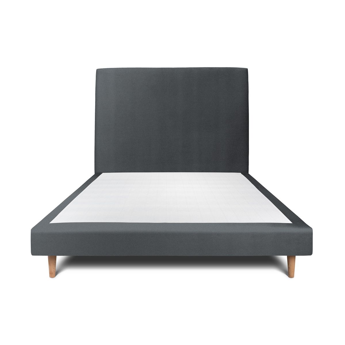Lit 135x190cm avec tête de lit tapissier velours et sommier tapissier gris anthracite - Hauteur totale :