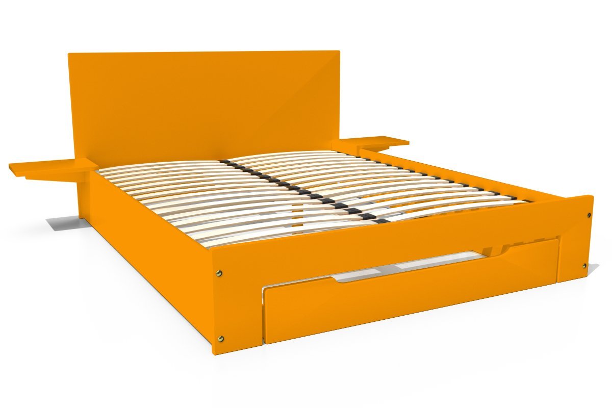 | Libellé | Lit 2 places Happy bois avec tiroir et chevets amovibles, Couleur: Orange, Dimensions: 140x190 |