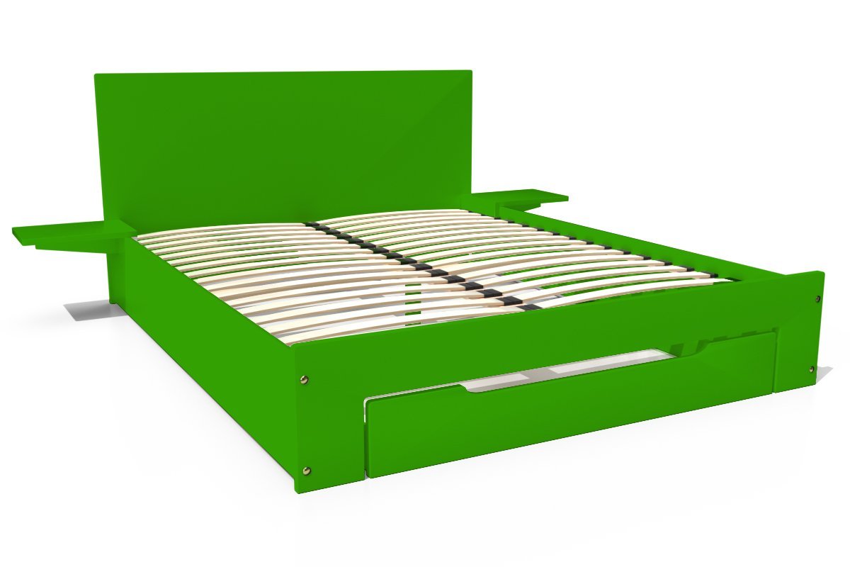 | Libellé | Lit 2 places Happy bois avec tiroir et chevets amovibles, Couleur: Vert, Dimensions: 140x200 |