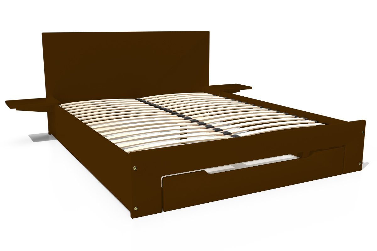 Lit 2 places Happy bois avec tiroir et chevets amovibles, Couleur: Wengé, Dimensions: 140x190