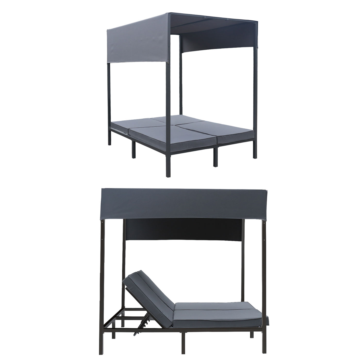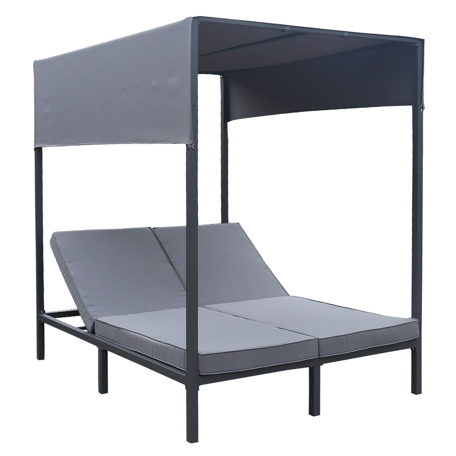 Lit à baldaquin d'extérieur BARBADOS - aluminium anthracite/coussins gris