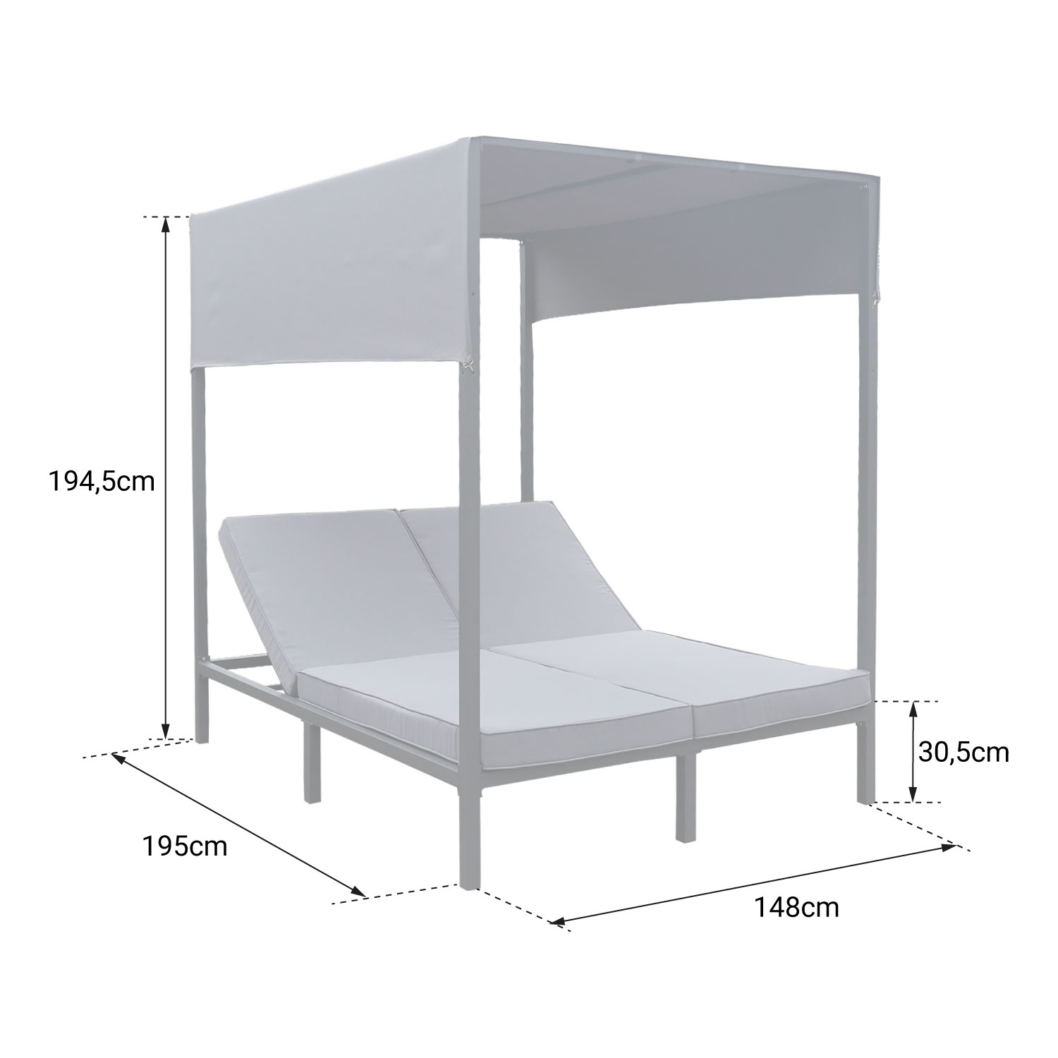 Découvrez un lit de jardin élégant et pratique à installer dans le jardin, sur une grande terrasse ou près d'une piscine. Le modèle BARBADOS est parfait pour se prélasser en duo pendant les chaudes journées ensoleillées de la saison estivale. Accordez-vous une sieste reposante et allongez-vous confortablement dans ce bain de soleil double. Ce lit à baldaquin d'extérieur a été conçu dans une structure en aluminium sur laquelle sont disposés des coussins moelleux. Vous pouvez enlever les housses des coussins facilement à l'aide d'un zip pour les laver à la main, de quoi bien les entretenir avant d'en profiter durant la belle saison.