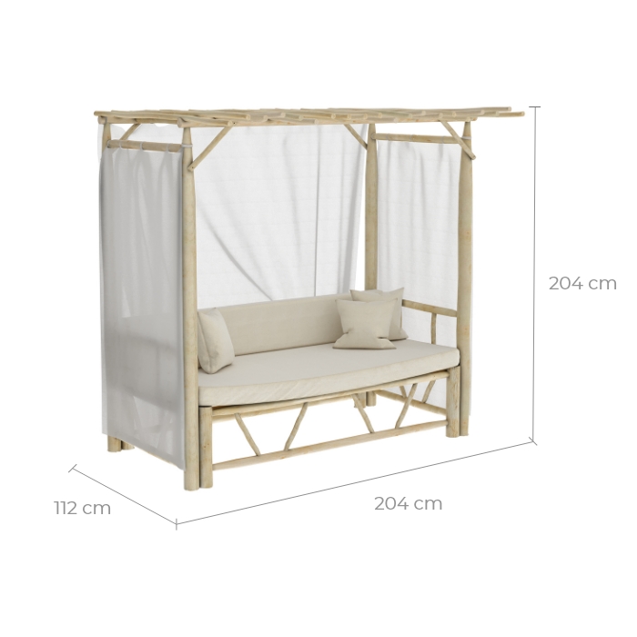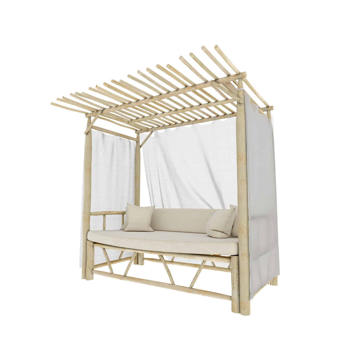 Si vous souhaitez créer une ambiance exotique et tropicale dans votre jardin, le lit à baldaquin d'extérieur Tika est un must. Adoptez-le sur une terrasse pour profiter des beaux jours en lézardant sur son matelas confortable et ses coussins. Canapé à l’assise profonde, il devient un lit de repos idéal pour la sieste. Entouré de voilages et surmonté d’une structure en pergola, ce daybed présente un design inédit.