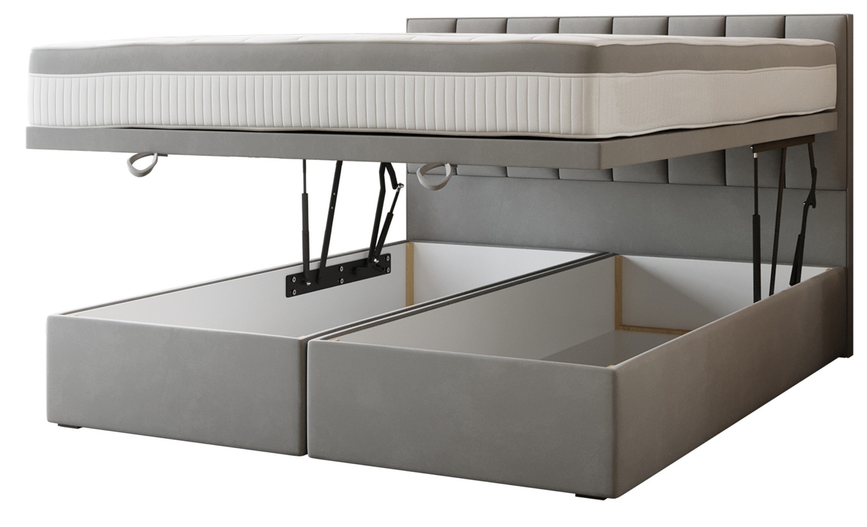 Lit adulte 160x200 cm BOND – avec rangement et matelas ressorts ensachés – tissu velours - gris