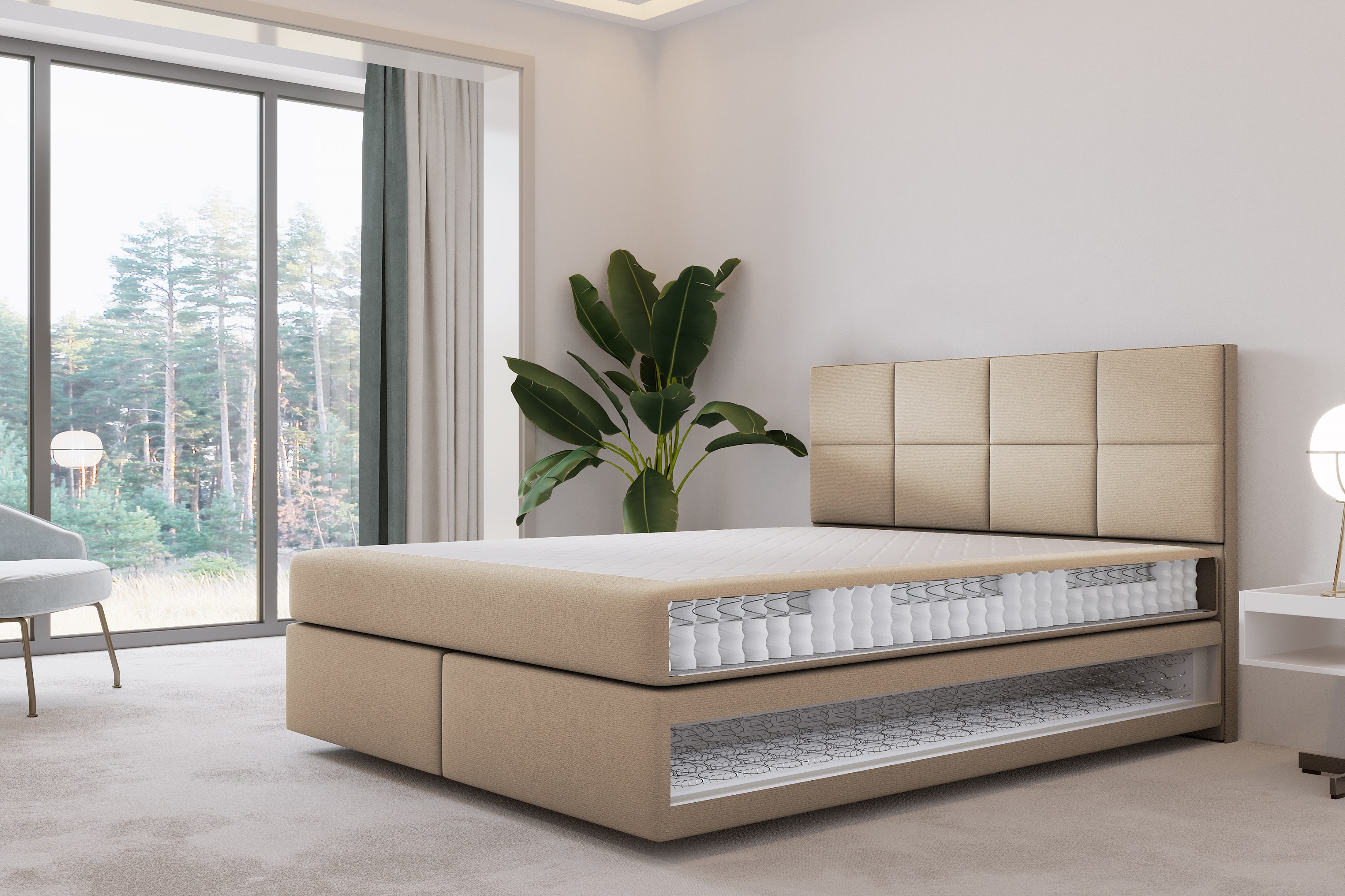 Lit adulte 160x200 cm mallorca – lit suspendu avec matelas ressorts ensachés et matelas bonnell – tissu v