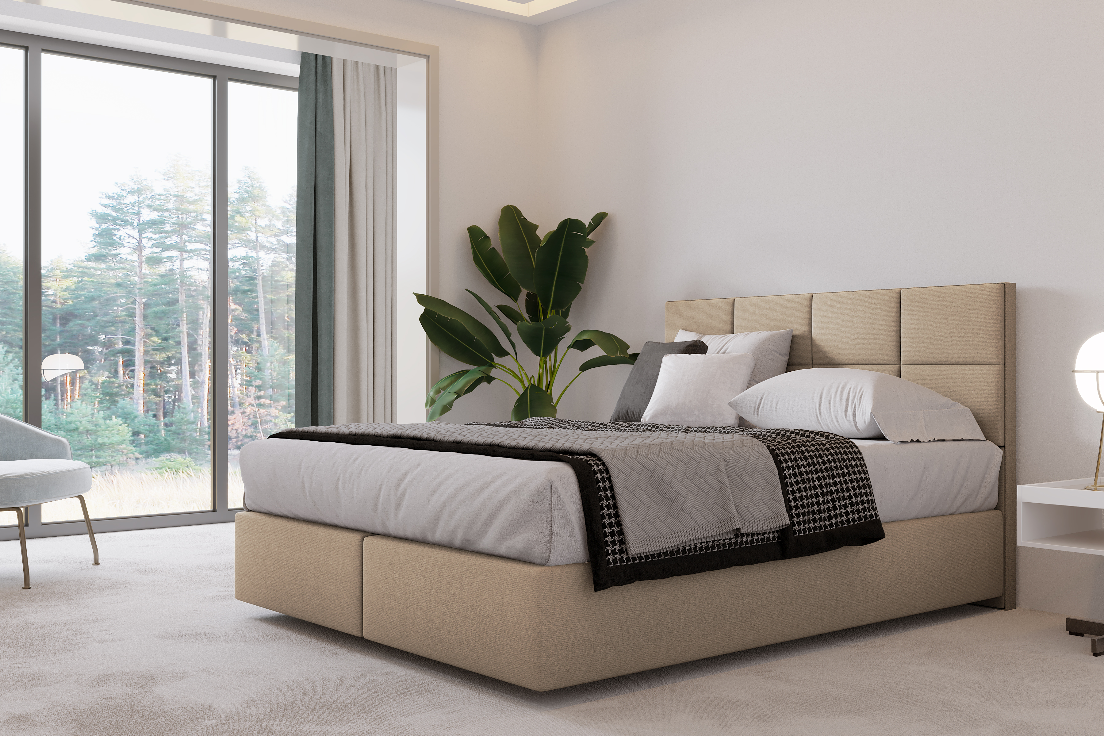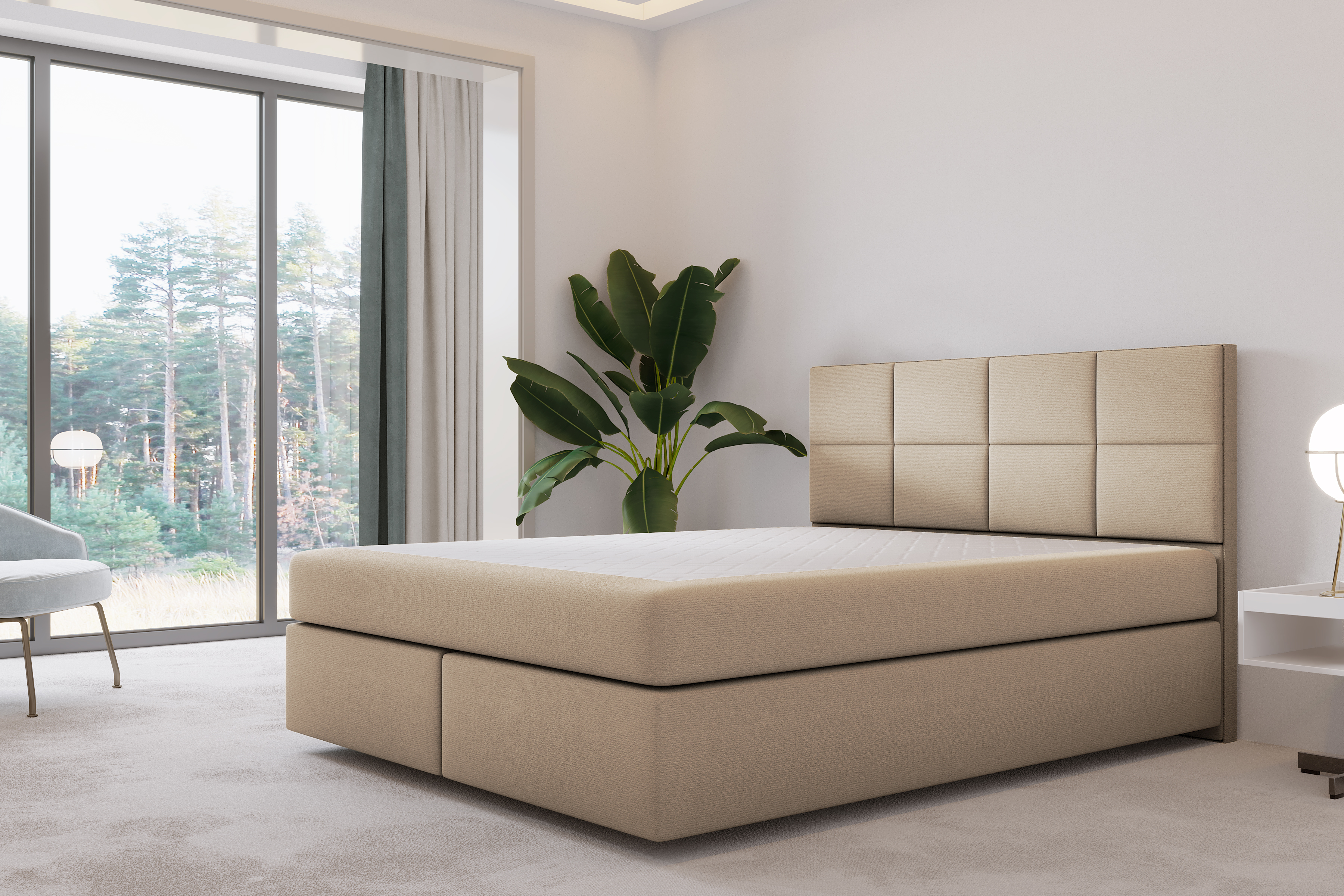 Lit adulte 160x200 cm MALLORCA – lit suspendu avec matelas ressorts ensachés et matelas bonnell – tissu velours - Dormez en lévitation et gagnez en sensation d'espace grâce à un lit suspendu. Lit adulte rembourré MALLORCA c’est un nouveau lit suspendu avec double matelas de haut de gamme intégrés dans le cadre en bois. Suspendez votre lit dans le vide et flottez avec lui, léger et aérien, à contre-courant de la gravité ! Pour ne pas rompre avec la logique minimaliste et épurée d’une grande chambre contemporaine, on mise sur un lit surélevé sur les pieds en bois de hêtre de seulement 7 centimètres du sol. C’est discret mais efficace. Car cela allège une structure centrale aux lignes géométriques et rigoureuses, qui aurait pu peser de manière négative sur l’ensemble de la pièce si elle n’avait pas été mise en lévitation. Le base du lit de 30 cm est composé d’un matelas bonnell sur lequel nous avons posé un matelas à ressorts ensachés de 18 cm avec 9 zones de confort H3 Pocket Energy Spring. Cela nous donne un excellent couchage à la hauteur de 55 cm. Le matelas à ressorts ensachés n’est pas fixé au lit – il est uniquement placé sur le lit, mais il ne bouge pas grâce à la finition en tissu antidérapant de la housse. Les matelas Pocket sont une garantie de confort et de durabilité. Cette solution permet d'obtenir de nombreux points d'appui sur la surface et assure une parfaite adaptation au corps. Ce groupe de matelas est le plus populaire sur le marché européen. Matelas mi-dur H3. Largeur au choix: 140 / 160 / 180 / 200 cm. Tissu velours anti-taches : Casablanca qui se caractérise par une surface agréable et une résistance à l'abrasion. Il a des propriétés hydrofuges (Water Blocked), ce qui rend les meubles beaucoup plus faciles à nettoyer. Composition : 100 % polyester. Dimensions : Longueur : 210 cm. Largeur : 140 cm. Hauteur de la tête de lit : 110 cm. Surface de couchage : 140 x 200 cm. Hauteur de couchage : 55 cm. Hauteur de pieds : 7 cm. Livré en 4 colis. Le lit est conçu pour être placé contre un mur. L'arrière de la tête de lit est fabriqué en tissu Fibretex. Les couleurs des tissus et arrangements présentés peuvent différer légèrement des couleurs réelles. La saturation des couleurs dépend des paramètres de l'écran. Les meubles sont livrés par une société de transport spécialisée à domicile en France et Belgique. Montage du lit en plus ? - possible mais c’est un service payant. Disponible en 4 dimensions de couchage dans 3 couleurs au choix : gris clair, beige ou noir.