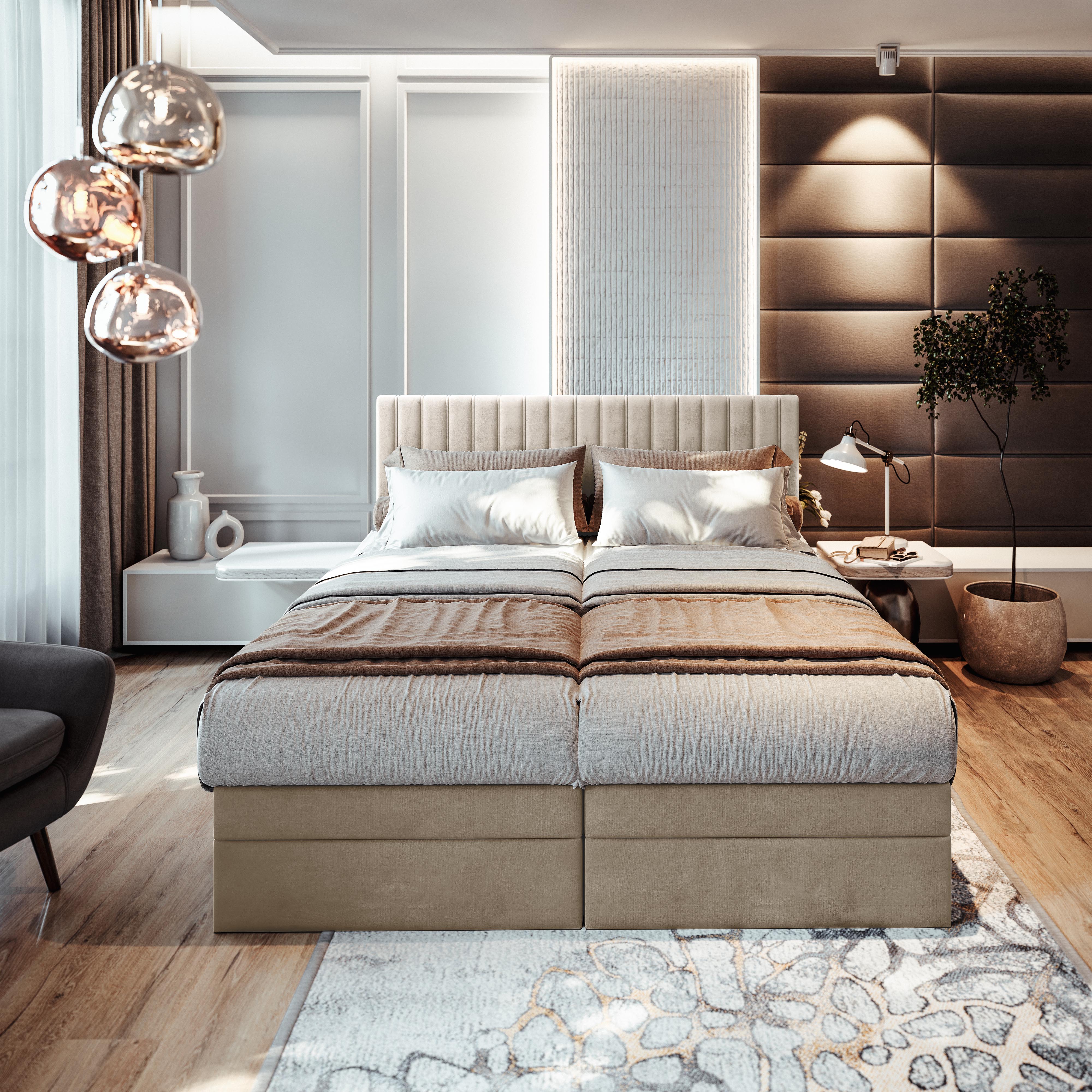 Lit adulte 180x200 ADÈLE - ensemble matelas+sommier relaxation électrique - beige