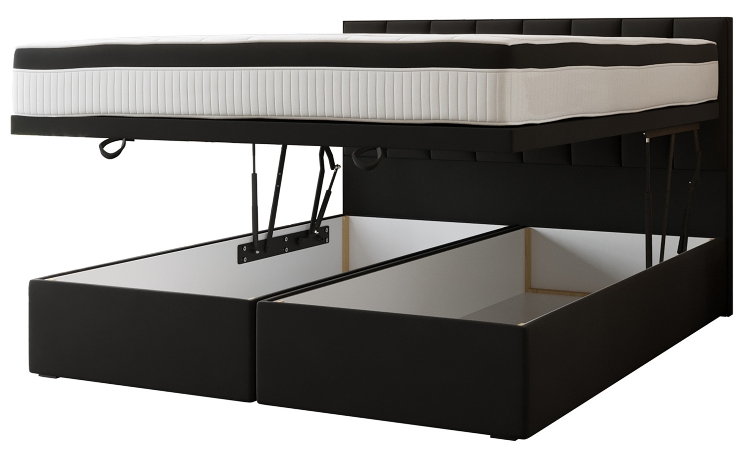 Lit adulte 180x200 cm BOND – avec rangement et matelas ressorts ensachés – tissu velours - noir