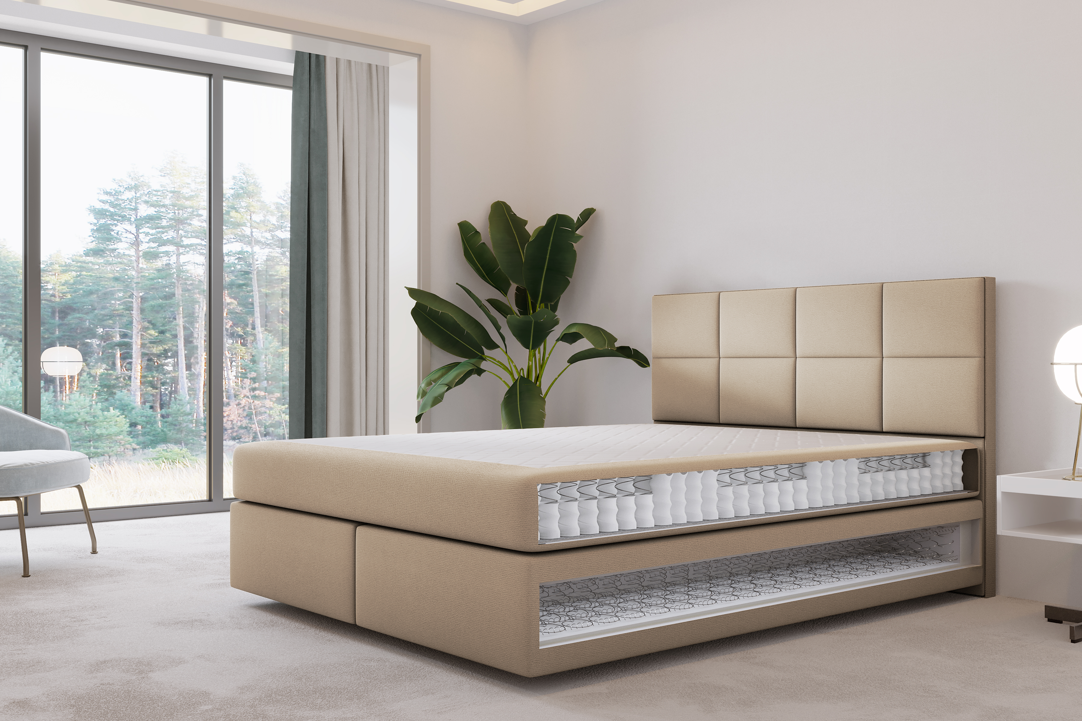 Lit adulte 180x200 cm mallorca – lit suspendu avec matelas ressorts ensachés et matelas bonnell – tissu v