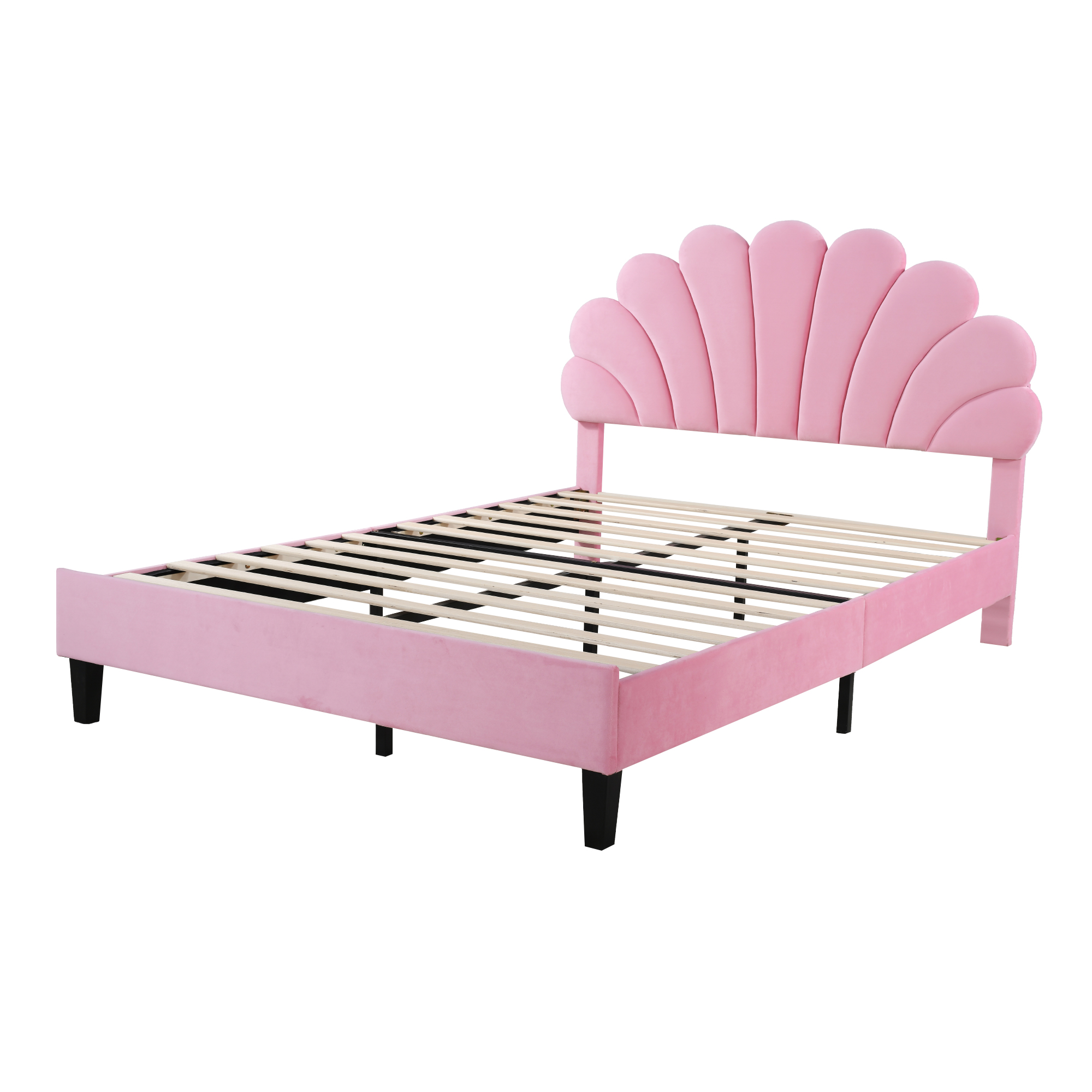 | Libellé | Lit Adulte Double 140x200cm, avec Tête de Lit Fleurie et Sommier, Velours, Rose, sans Matelas |