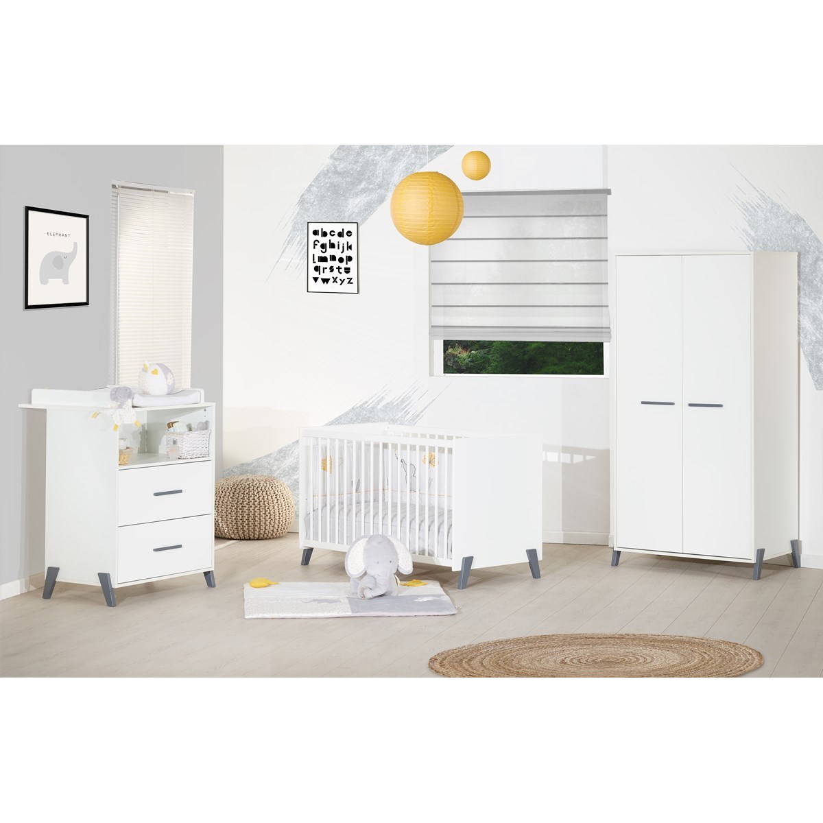 Le lit bébé de la collection Joy sera parfait pour offrir à votre bébé de belles nuits de sommeil. Design et confortable, il est également très pratique grâce à son sommier réglable sur 3 hauteurs Pour une chambre complète, vous pourrez associer à votre lit, la commode 2 tiroirs avec plan à langer et l'armoire 2 portes.