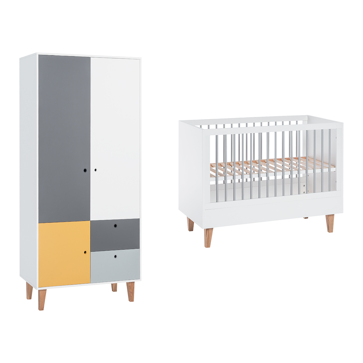 | Libellé | Lit bébé 60x120 et Armoire 2 portes Vox Concept - Jaune |