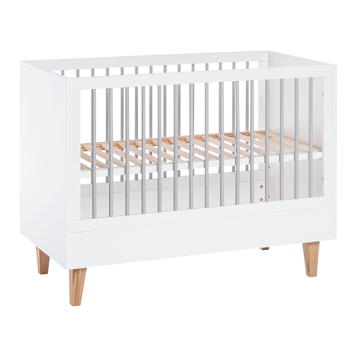 Lit 60x120: Armature blanche / Barreaux gris / Pieds couleur bois