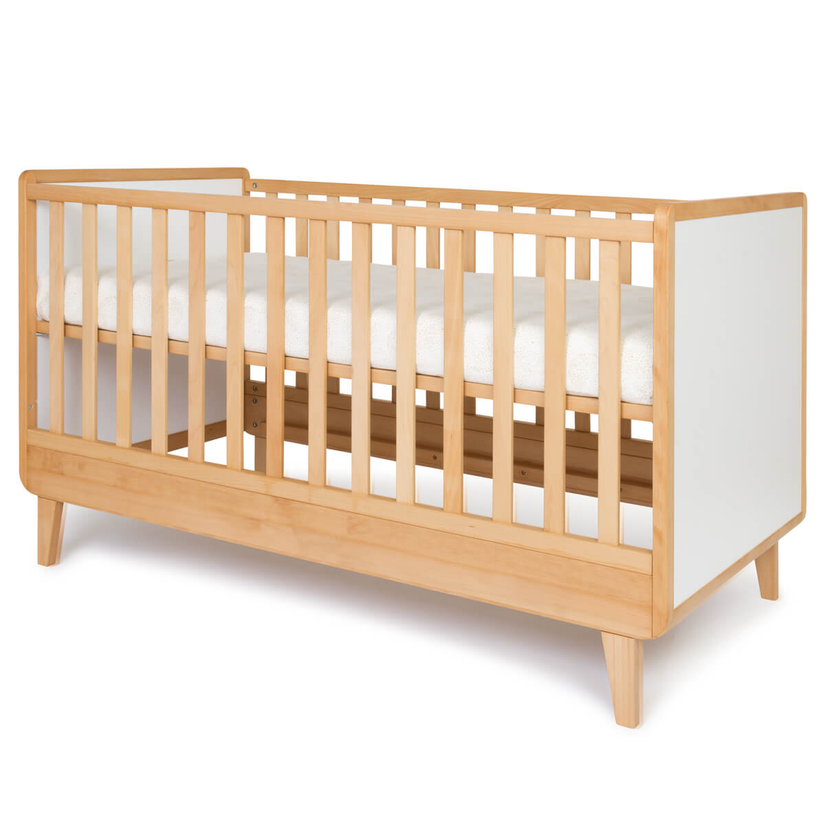 Conçu en bois de hêtre massif huilé et mélaminé, le lit bébé de la collection NADO s'inscrit dans un esprit sobre et contemporain et permet de créer des ambiances neutres qui s'adapteront à tous les styles.