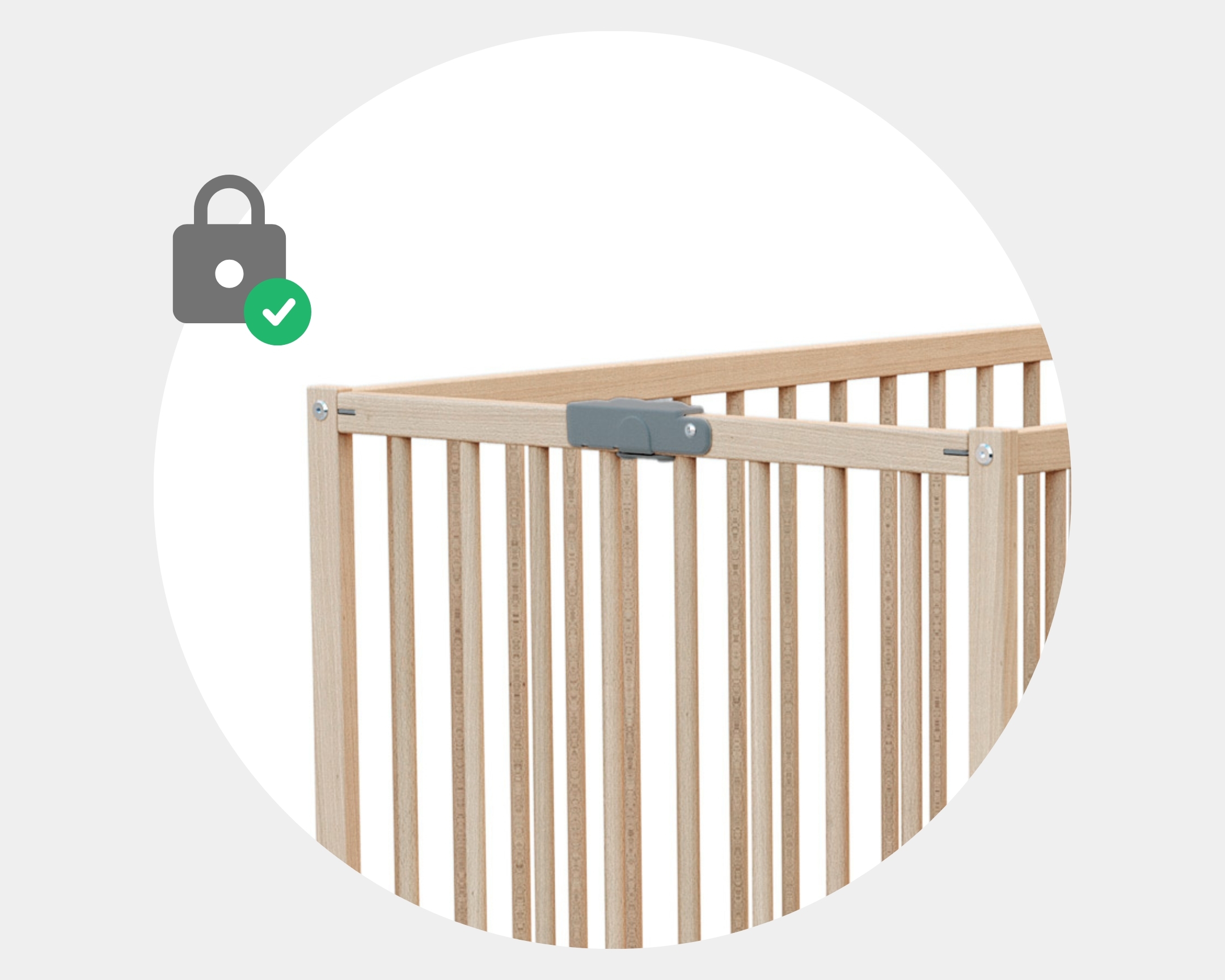 Lit pliant 60 x 120 cm. Un lit pliant en bois compact et pratique pour offrir un grand confort de sommeil aux bébés (sommier à lattes en hêtre massif) et se ranger facilement. Sécurité garantie grâce à ses 2 manettes de verrouillage.
