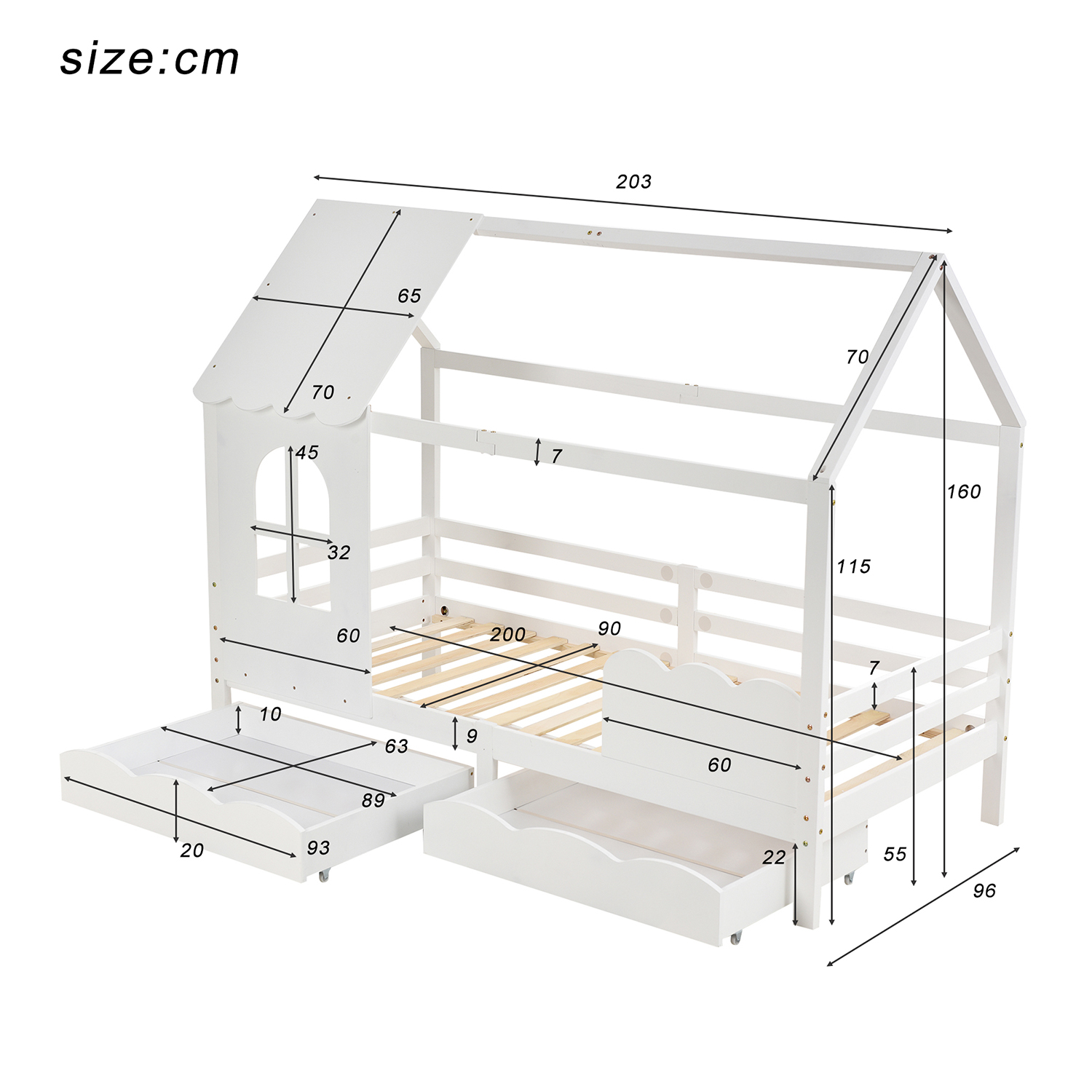 | Libellé | Lit cabane 200x90 cm avec protection - Blanc Lit d'enfant |