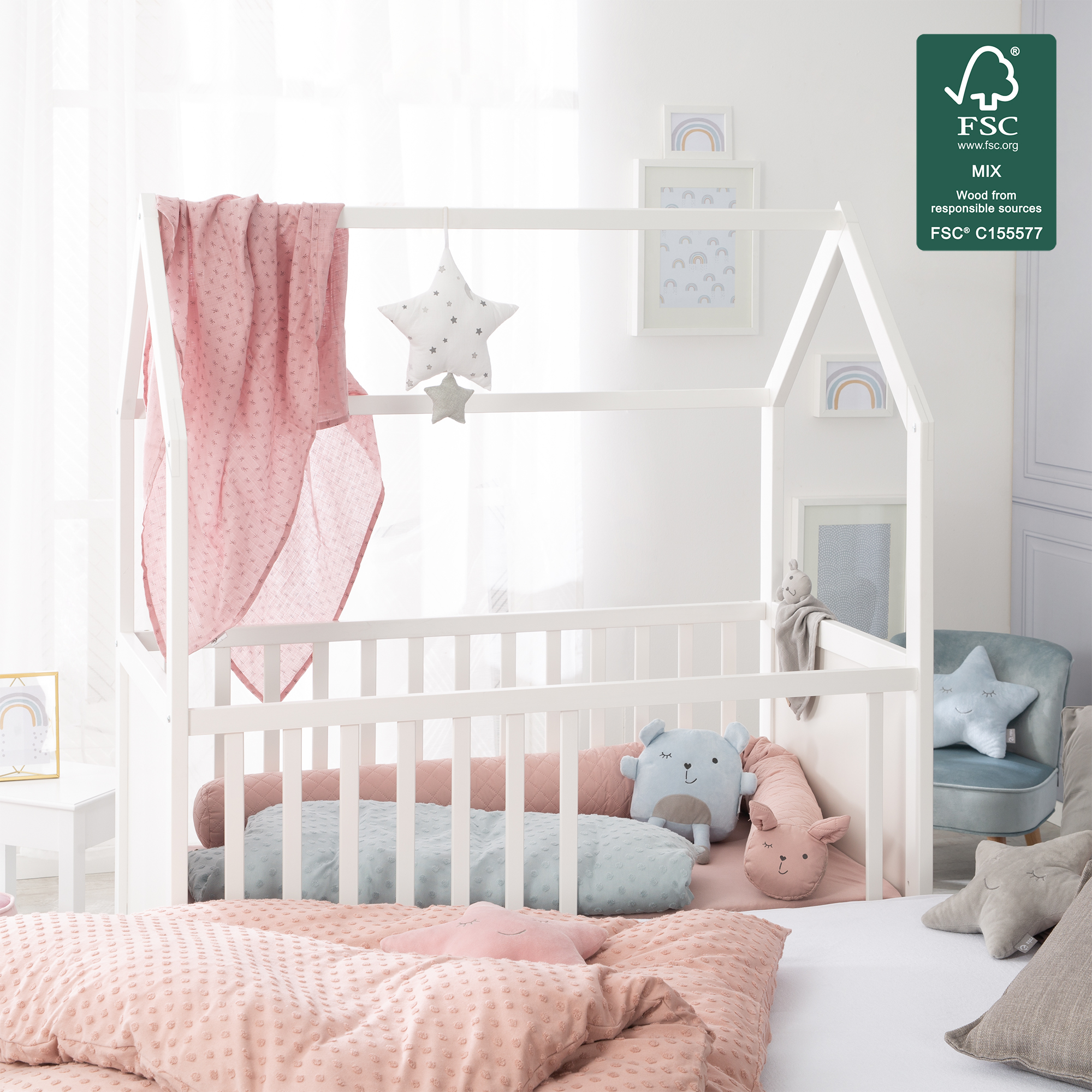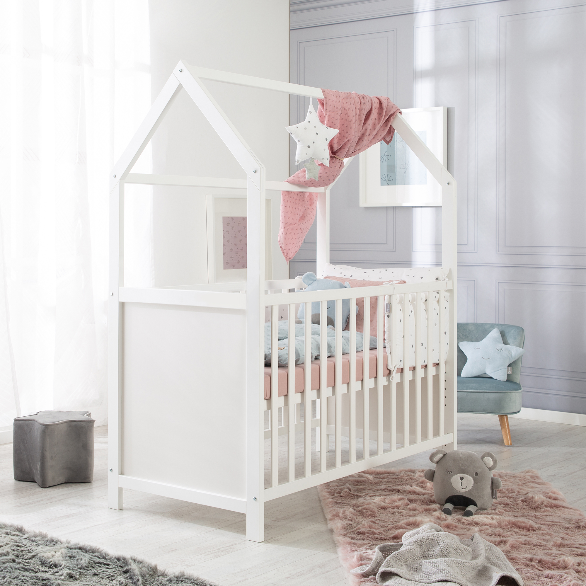 | Libellé | Lit cabane 60 x 120 cm - certifié FSC - lit bébé et cododo - blanc |