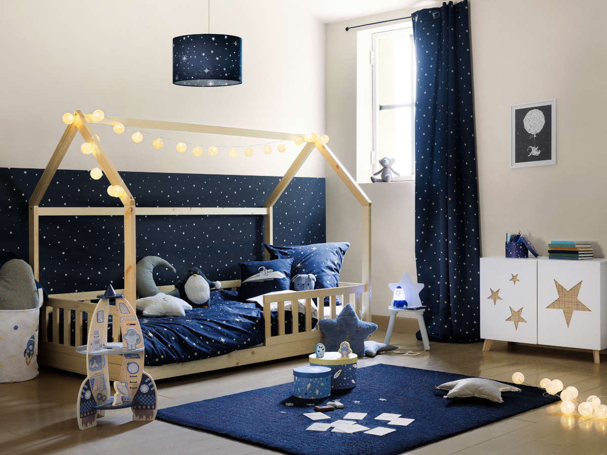 Lit cabane en bois de marque Atmosphera. Ce lit enfant est un atout idéal pour sublimer et aménager la chambre de votre enfant. Il permettra à votre enfant de passer d'agréables nuits dans son cocon. Ce lit à tout d'une véritable cabane. Il peut facilement trouver sa place dans tous les univers de chambre. En effet, son habillage neutre conviendra parfaitement à une chambre de fille ou de garçon. Livré avec sommier. A monter soi-même, notice incluse. Le matelas, les coussins, la couette et les autres décorations d'ambiance ne sont pas inclus.Ecart entre les barreaux : 8 cm - Barreaux de 20 cm de hauteur. Dimension produit: L. 195 x P. 98,2 x H. 145,7 cm. Poids du produit: 28 Kg. Matière: pin/ contre plaqué.