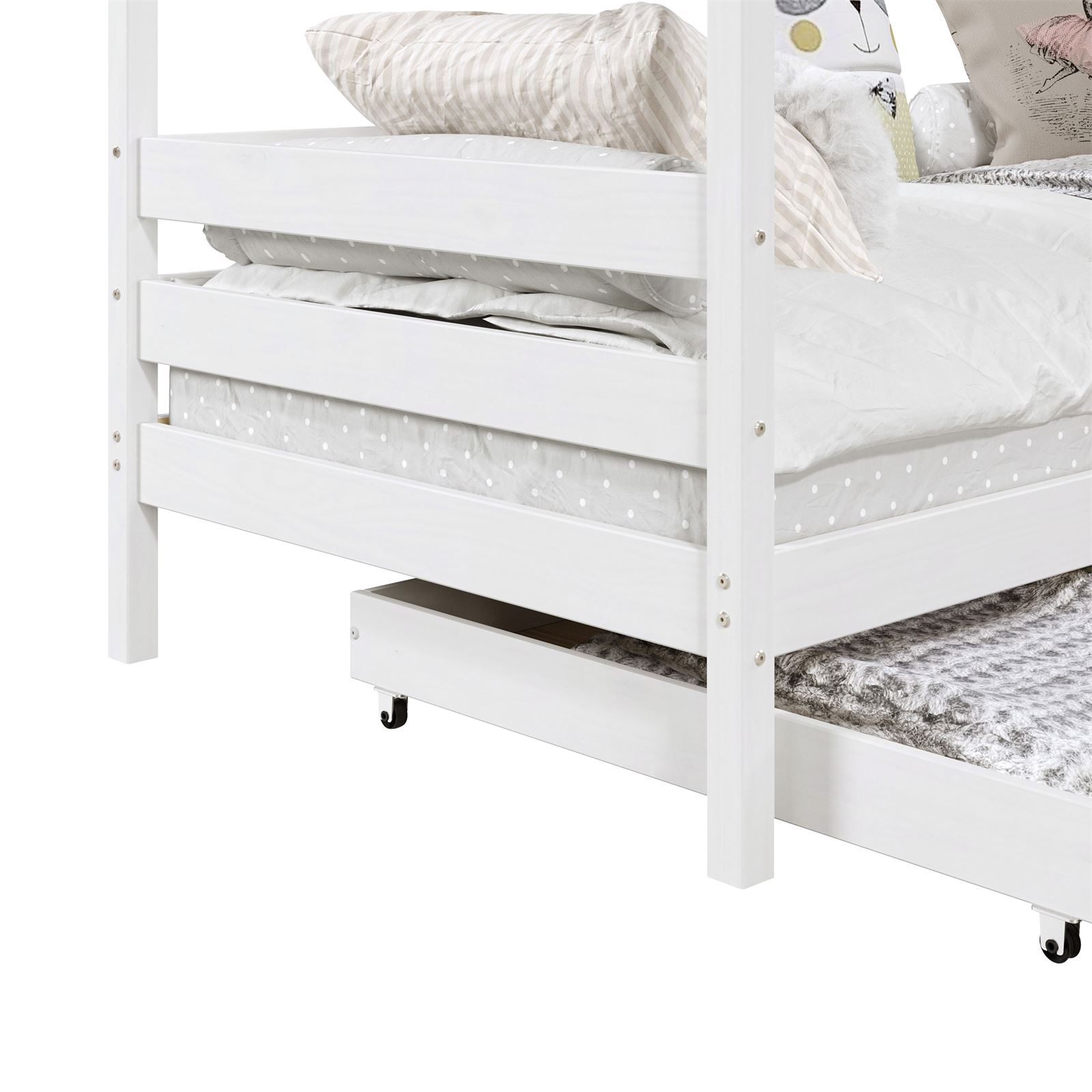 | Libellé | Lit cabane CLIA lit simple pour enfant montessori 90 x 190 cm avec rangement 2 tiroirs et barrières de protection, en massif blanc |