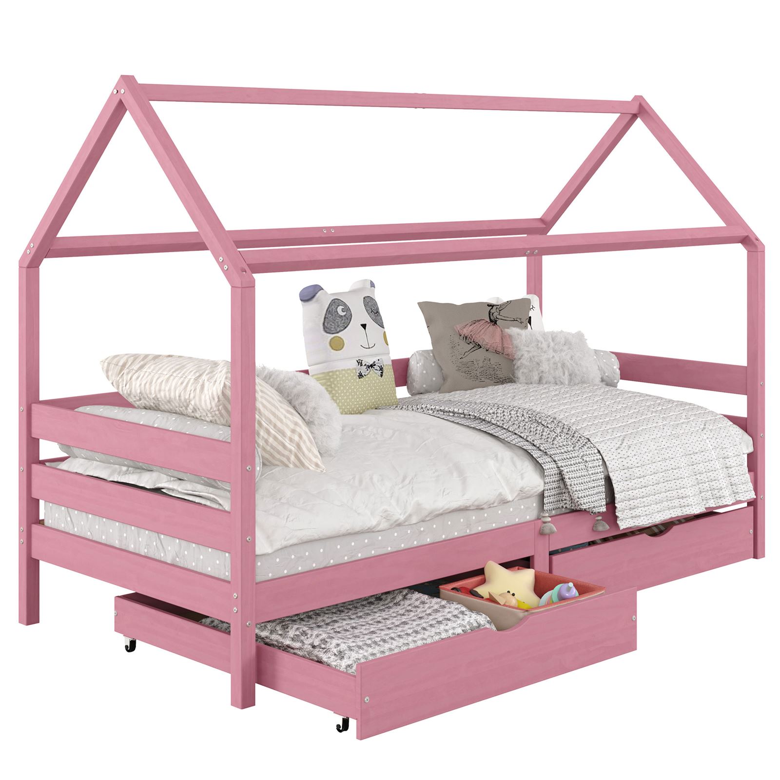 | Libellé | Lit cabane CLIA lit simple pour enfant montessori 90 x 190 cm avec rangement 2 tiroirs et barrières de protection, pin massif rose |