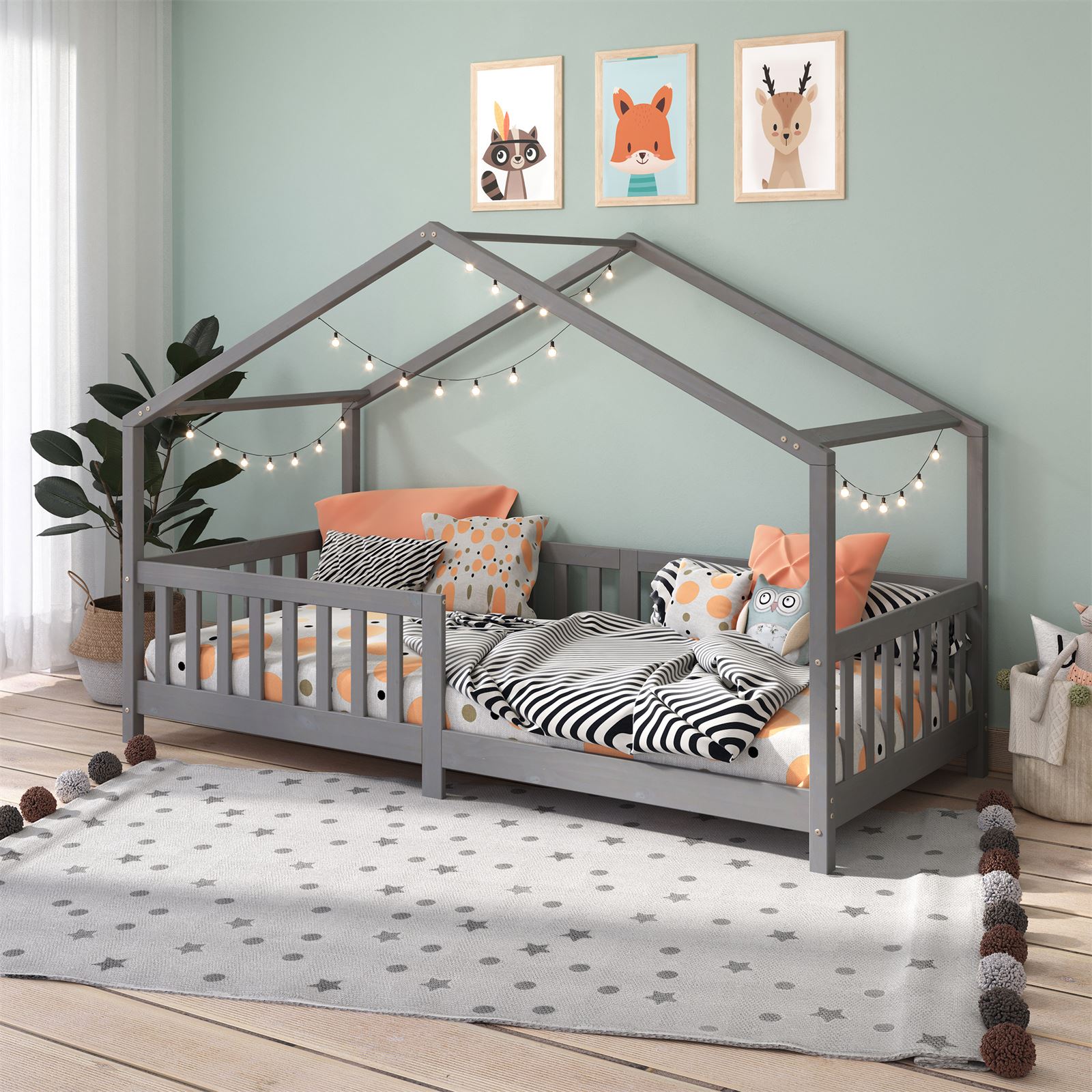 | Libellé | Lit cabane enfant 90x190 cm LISAN lit Simple montessori avec Barrières de Protection en Bois Massif lasuré gris |