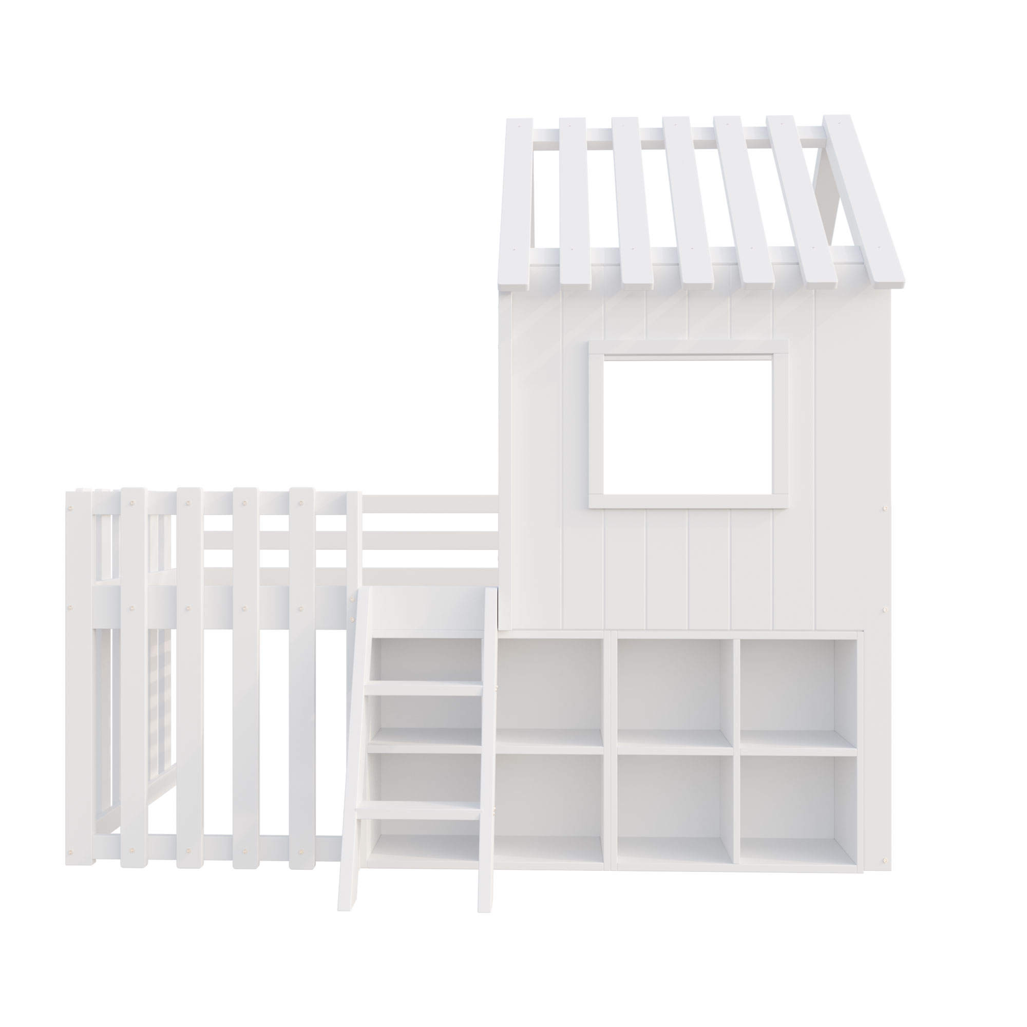 | Libellé | Lit cabane enfant 90x200, avec rangement, échelle d'accès, bois blanc, sans matelas |