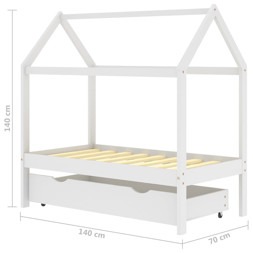 Lit cabane enfant avec un tiroir Blanc Pin massif 70x140