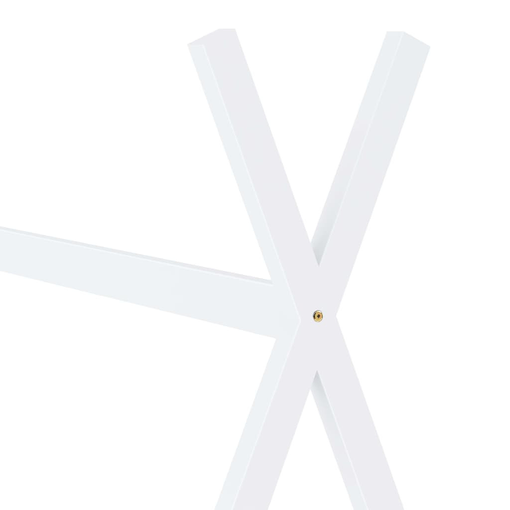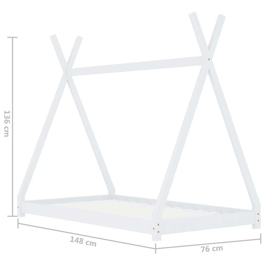Créez le refuge ultime dans la chambre de vos enfants avec notre cadre de lit fantastique ! Le lit présente un cadre croisé innovant inspiré des tentes de style tipi cool où vous pouvez accrocher des rideaux de lit pour créer de l'intimité pour votre enfant. Il peut également être utilisé comme coin lecture ou maison de jeu pour votre enfant. Fabriqué en bois de pin massif, ce cadre de lit est extrêmement robuste et durable. Les lattes résistantes offrent le soutien nécessaire et sont très confortables. Ce cadre de lit convient à un matelas de 70 x 140 cm. Veuillez noter que la livraison inclut un cadre de lit seulement ; un matelas et les rideaux ne sont pas inclus. Le lit est facile à assembler. Vous pouvez chercher le matelas correspondant dans notre boutique. Couleur : blanc Matériaux : lattes en contreplaqué + cadre en pin massif Dimensions totales : 148 x 76 x 136 cm (L x l x H) Dimensions du matelas correspondant : 70 x 140 cm (l x L) (matelas non inclus) AVERTISSEMENT ! Le produit ne convient pas aux enfants de moins de 4 ans.
