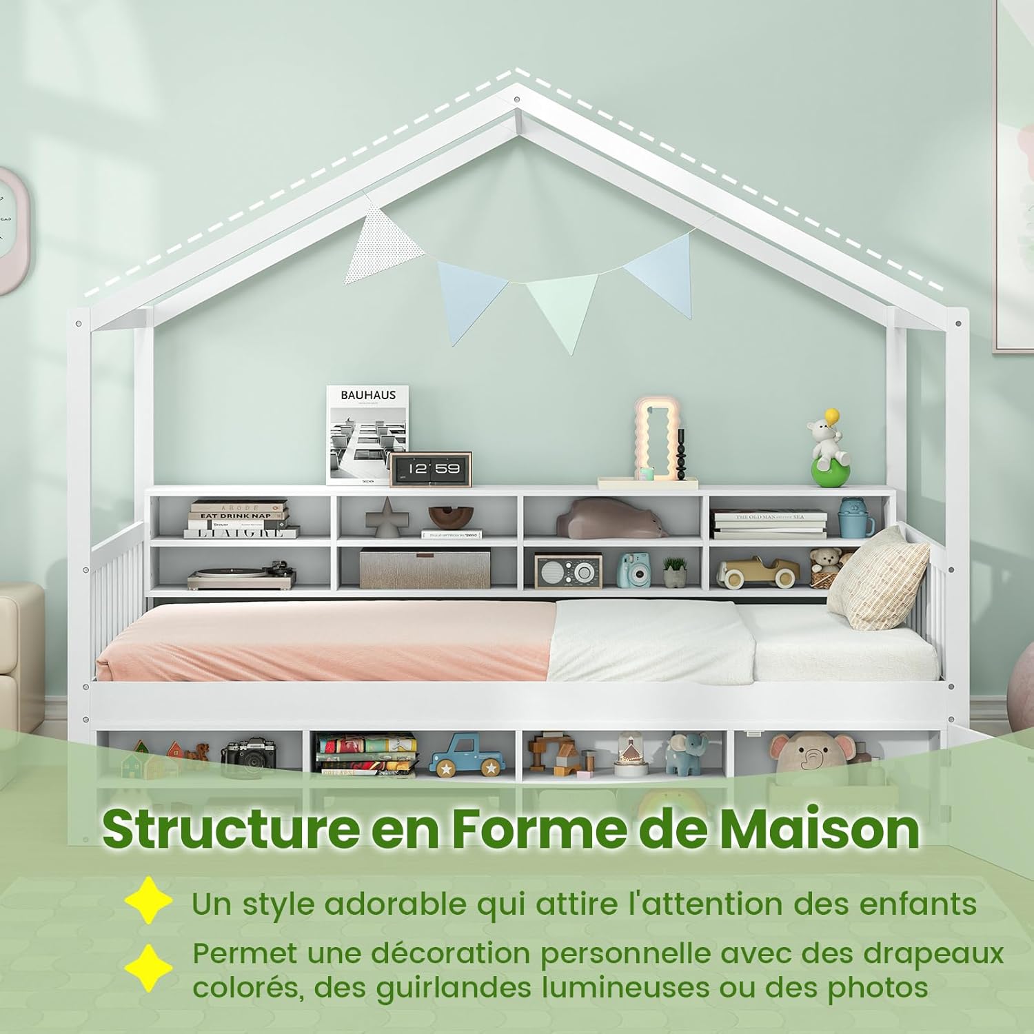 Avec une structure en forme de maison, le style adorable capte l'attention des enfants